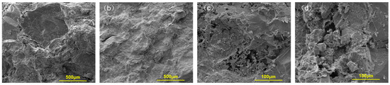 Reservoir pore types in the Tarim Basin are mainly intergranular micropores in clays and intragranular dissolution pores in feldspar, forming fracture–pore systems with poor connectivity. SEM observations reveal dense cementation with low porosity and permeability (Figure 2). Clay minerals are concentrated in pore-throats, reducing throat radii, increasing structural complexity, and enlarging surface area. Framework minerals are dominated by quartz and feldspar with interstitial clays, among which kaolinite and illite are hydrophilic [23]. The large specific surface area enhances water adsorption [24], leading to strong capillary imbibition and aqueous-phase trapping. Consequently, water faces difficulty regarding flowback due to the combined effects of capillary pressure and surface adsorption.