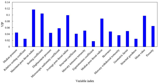 To test the objectivity of the above reference and mitigate subjective bias a two-step, data-driven workflow was performed. First, PLSR screening on Jurassic core MICP descriptors identified five permeability-sensitive variables—maximum pore-throat radius, sorting coefficient, average pore-throat radius, mean value, and median pore-throat radius (Figure 5). Second, these five variables were input in a k-means clustering analysis (distance to cluster centroids normalized) to discover natural groupings in the dataset [24].