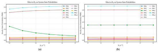A sensitivity analysis was further conducted by varying key transition rates (e.g., λ2, λ9, and λ11) within their practical operational ranges to evaluate how the system performance responds to fluctuations in data-cleaning and decision-making efficiency.