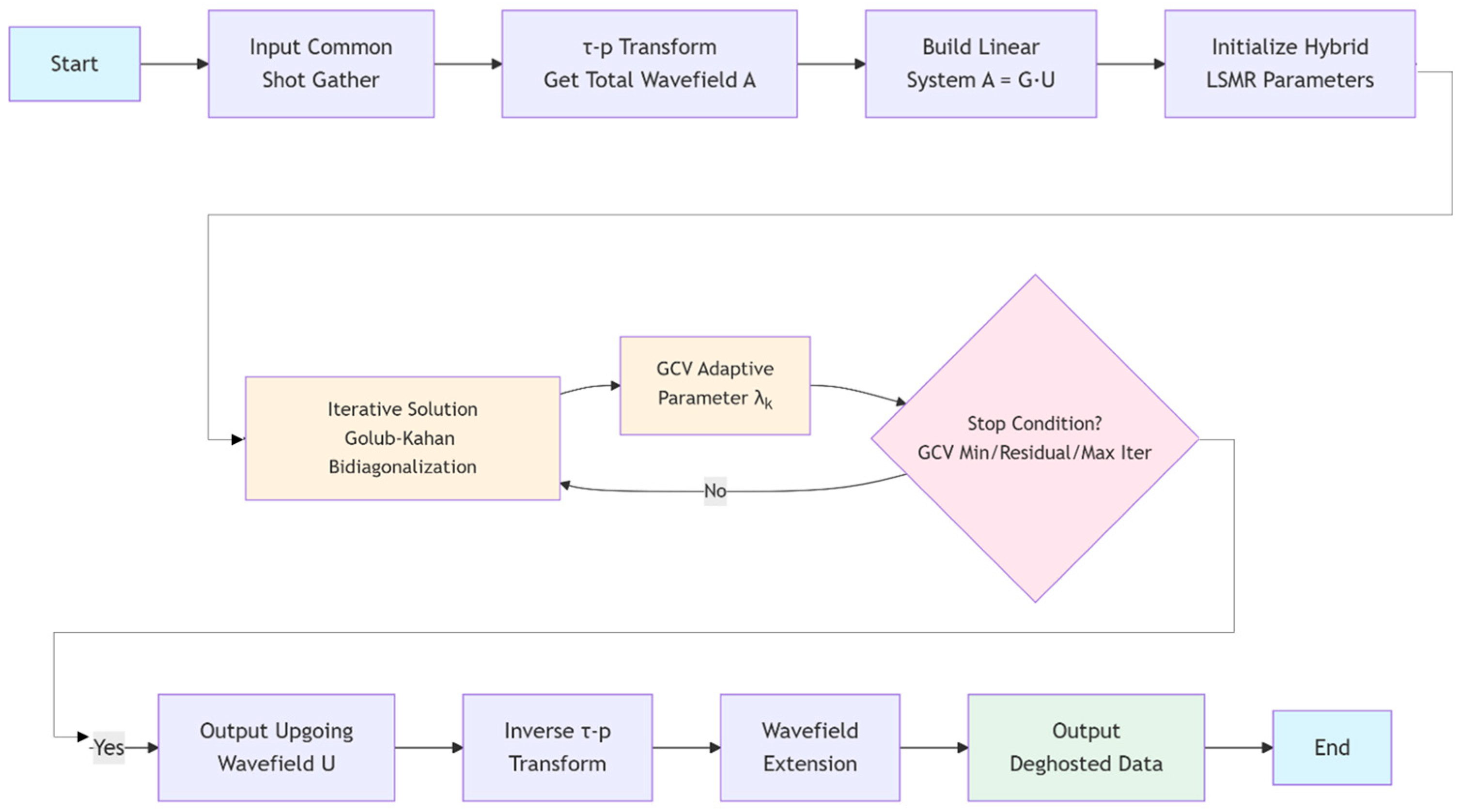 To clearly illustrate the implementation process of the proposed hybrid LSMR-based ghost wave suppression method, we present the detailed workflow as follows:
