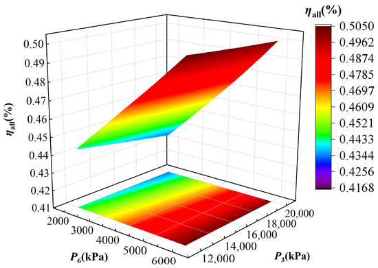 Effect of parameters P3 and P6 on exergy efficiency of IES.