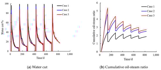 Comparison of water cut and cumulative oil-steam ratio for each case.