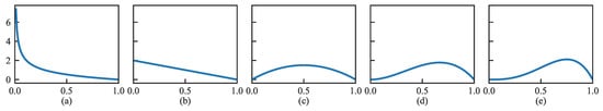 Probability density diagrams of Beta distribution under (a) , (b) , (c) , (d) , (e) .