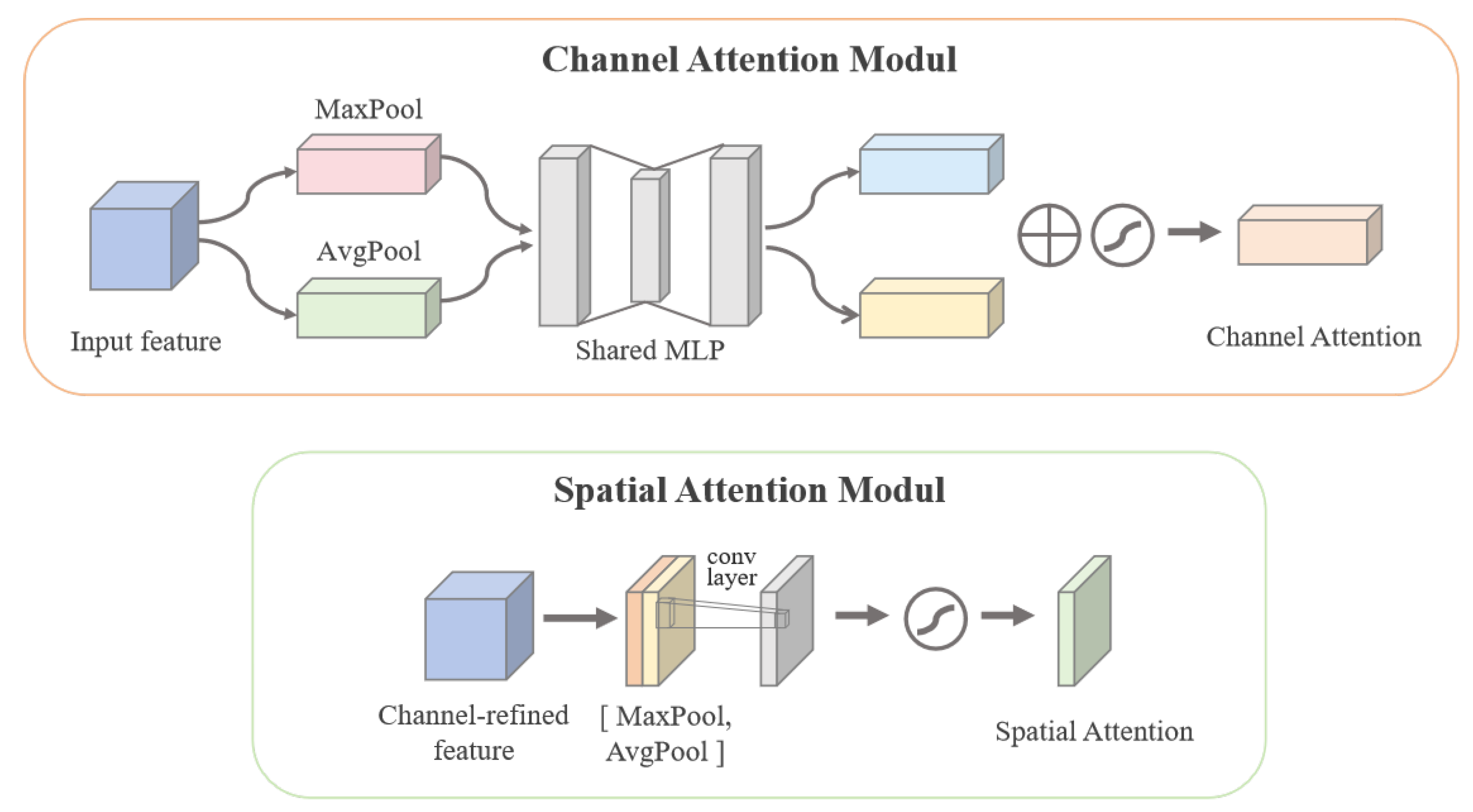 is the sigmoid function, and MLP is the shared fully connected layer with shared weights. The spatial attention module, on the other hand, generates an attention map over spatial locations by compressing the channel dimensions to emphasize key regions and suppress noise [