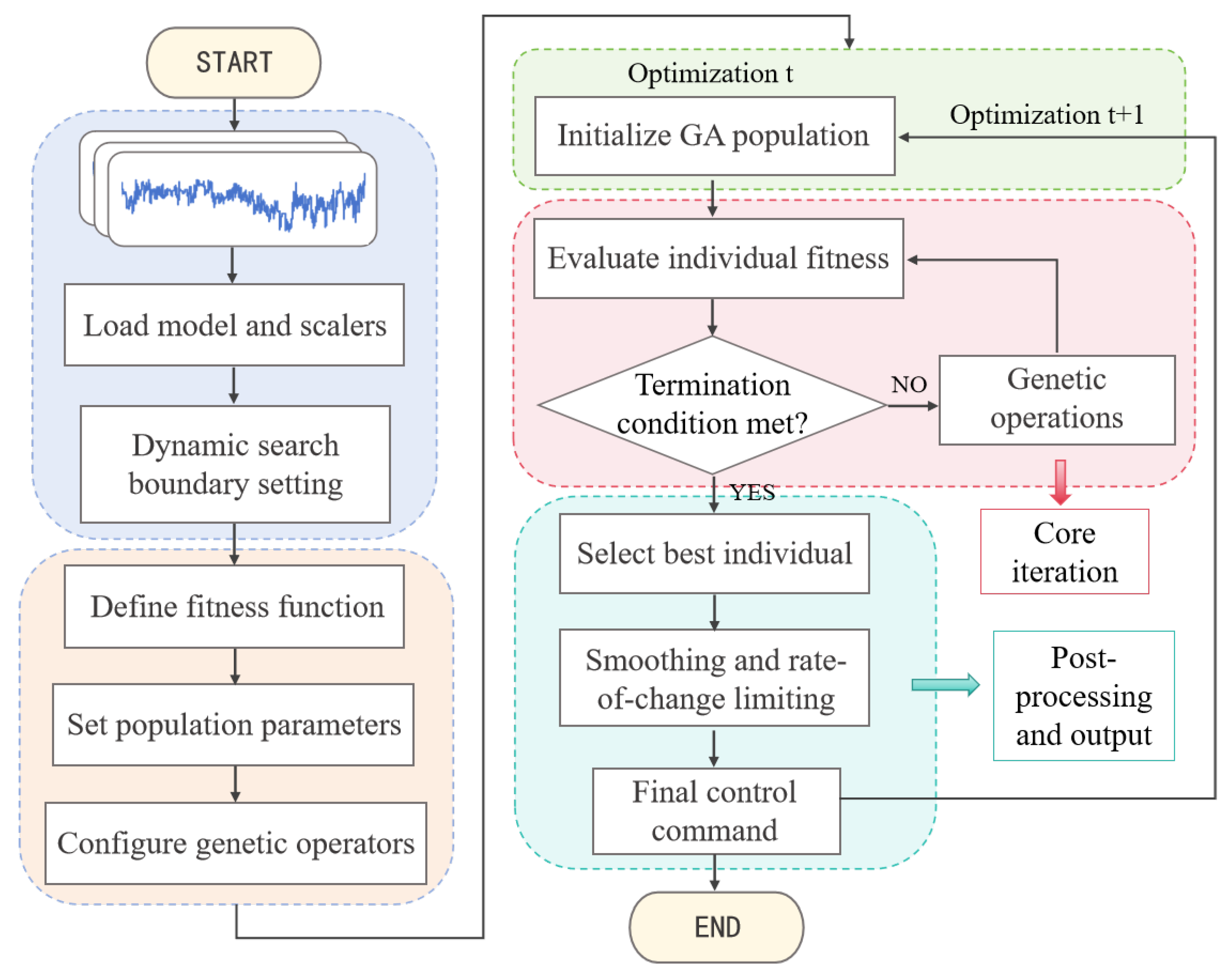 A data-driven search space optimization mechanism is employed to enhance both the efficiency and practicality of the algorithm. This mechanism dynamically narrows the search boundaries based on historical operational data and incorporates a post-processing control layer. By applying smoothing filters, the theoretically optimal solutions are converted into stable commands that can be safely executed by physical equipment, thereby enabling engineering-ready optimization. Specifically:
