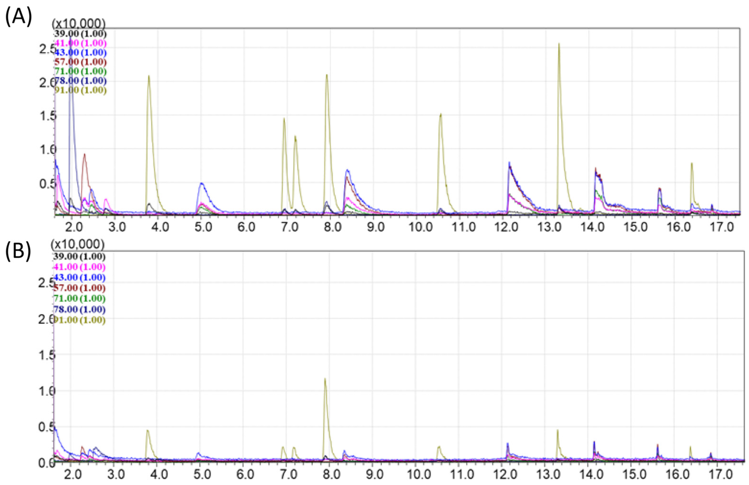 4.4. The Passive Sampling of VOCs from Natural Oils in Laboratory Conditions