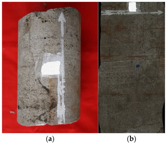 Core sample photo of P2jj from well Sa104 ((a) core sample photo; (b) core profile photo).
