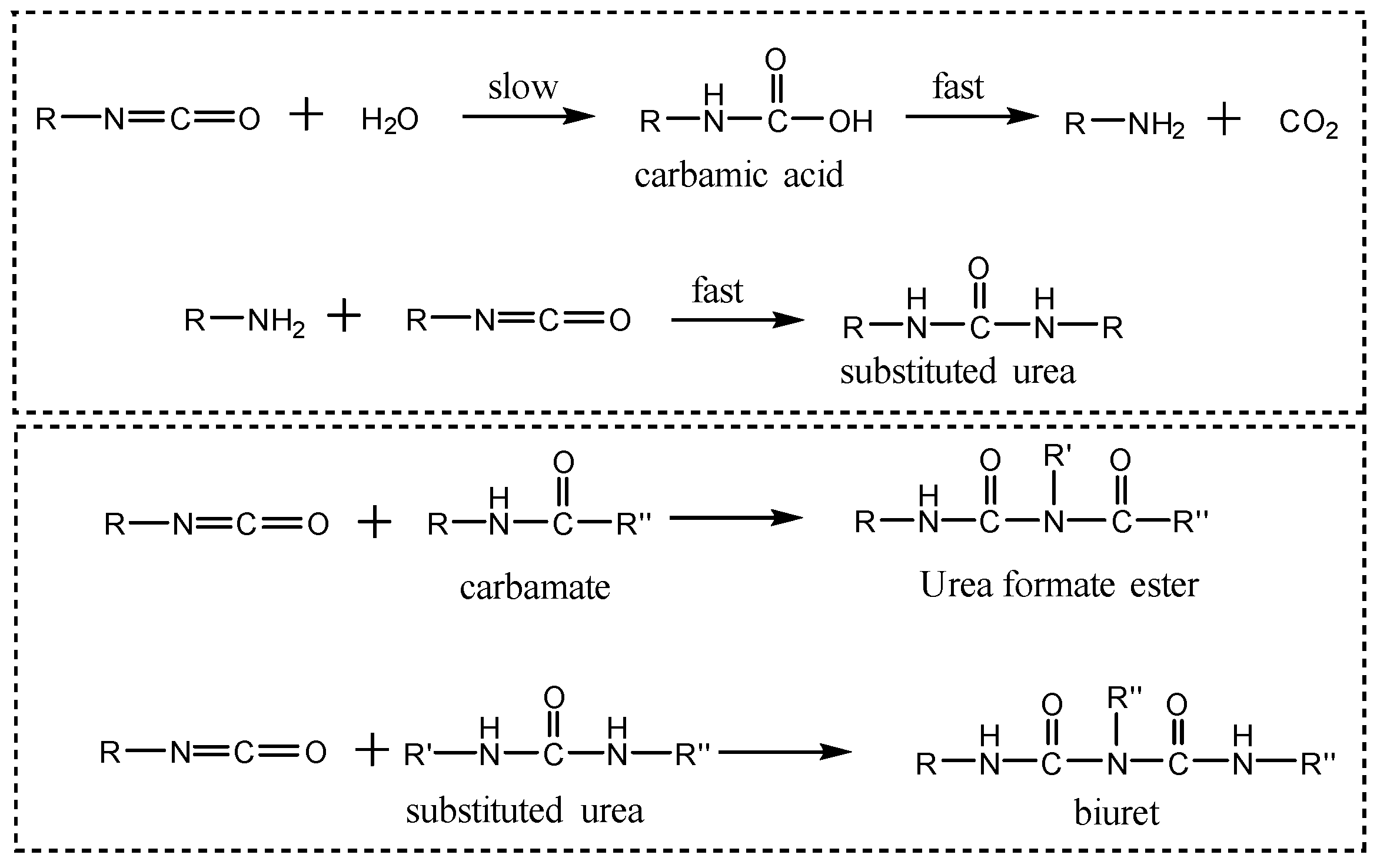 - A water-reactive polyurethane grouting material was synthesized using PPG and BDO as soft segments, MDI as the hard segment, and a composite catalyst system composed of PC-8 and T-12. The polyurethane was synthesized at an –NCO/–OH molar ratio of 1.8, 1 wt% BDO, and a 3 wt% composite catalyst, a polyurethane sealant exhibiting controllable gelation time and high mechanical strength, was obtained.