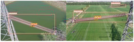 The use of UAV inspections generates a large amount of image data. Improving inspection efficiency while ensuring detection accuracy has become a major issue that needs to be addressed urgently. Traditional insulator defect detection algorithms primarily rely on manually constructed insulator defect features. The traditional insulator defect detection algorithm workflow mainly includes image preprocessing, feature extraction, and a defect classification model []. Defects are located using the insulators’ mechanical structure, color distribution, and texture features. This primarily includes edge detection algorithms based on the Canny operator or Sobel operator, as well as frequency domain analysis methods that extract periodic texture features of insulators using the Fourier transform or wavelet analysis. These algorithms achieve high accuracy and detection efficiency when detecting images with simple backgrounds, good lighting conditions, and distinct defect features. However, the aforementioned methods heavily rely on manually designed feature sets, resulting in insulator defect detection models with extremely weak generalization capabilities. When processing UAV inspection images, detection accuracy drops sharply. This is because images captured by UAVs often have complex backgrounds, and various factors such as farmland, weather, forests, and buildings are recorded in the images. The complex background interferes with the feature extraction of traditional insulator defect detection algorithms. Additionally, the types of insulator defects based on manually constructed feature sets are limited and cannot cover all kinds of insulator defects in actual working conditions, making it difficult for traditional insulator defect detection algorithms to locate insulators and defect types in images accurately []. Thanks to advancements in computer technology, deep learning algorithms have achieved remarkable success across various industries. By leveraging self-learning mechanisms to uncover patterns within data, deep learning algorithms significantly reduce reliance on manually constructed feature sets. In recent years, they have emerged as the mainstream algorithm in insulator defect detection.