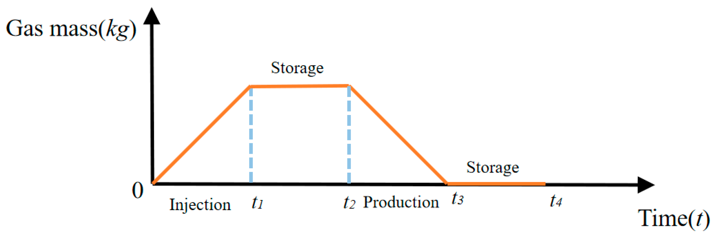 - Liu, H.T.; Li, P.; Wang, T.; Tang, X.; Wang, Z.; Liu, L.; Luo, J.; Tang, J. Thermodynamic performance of hydrogen in lined rock caverns for large-scale underground storage: Short-term and long-term analyses. J. Energy Storage 2025, 117, 116149. [Google Scholar] [CrossRef]