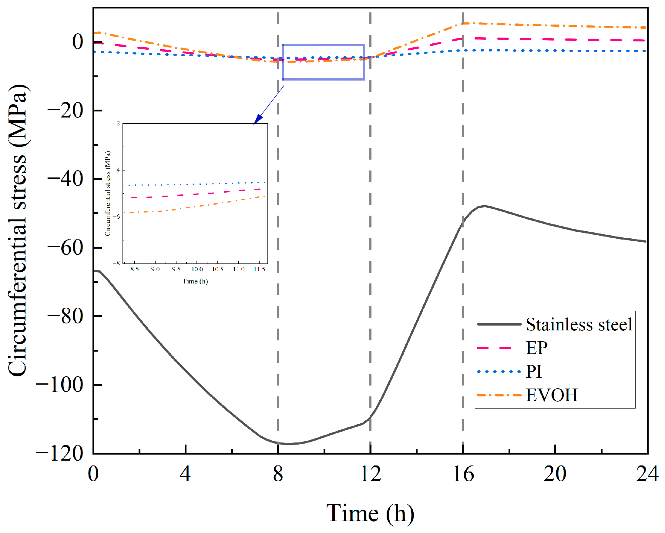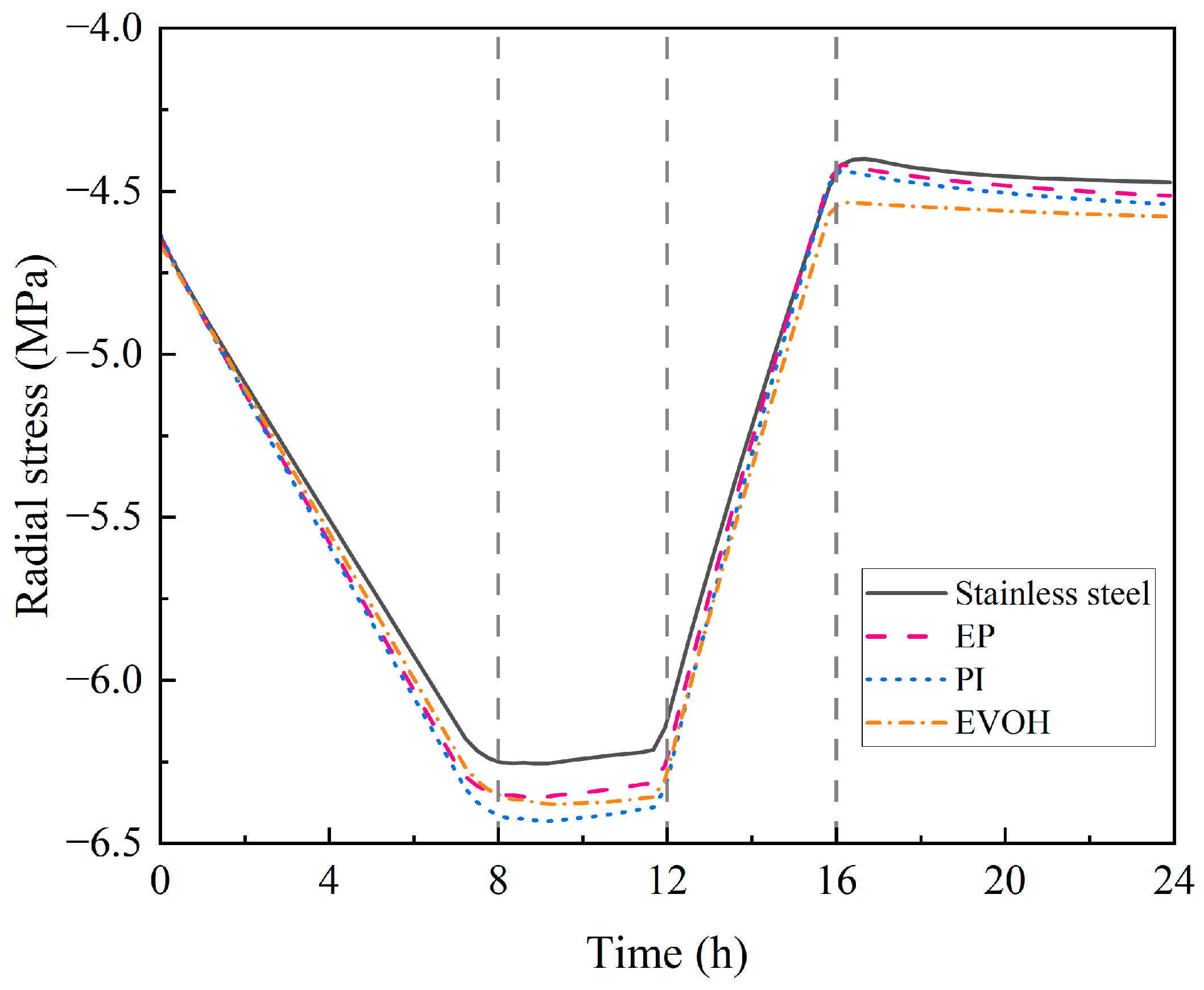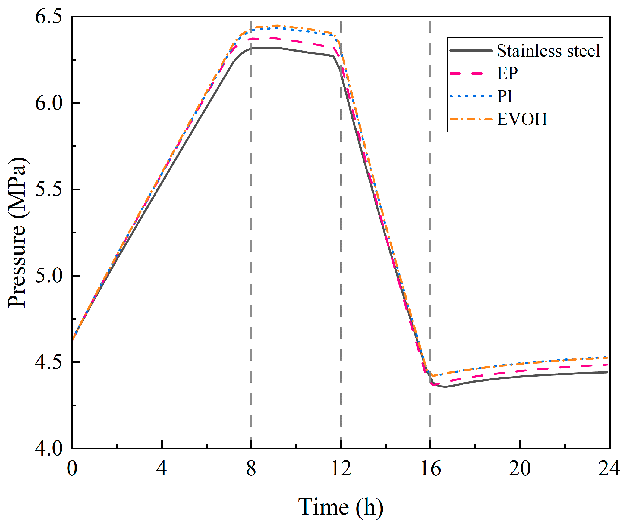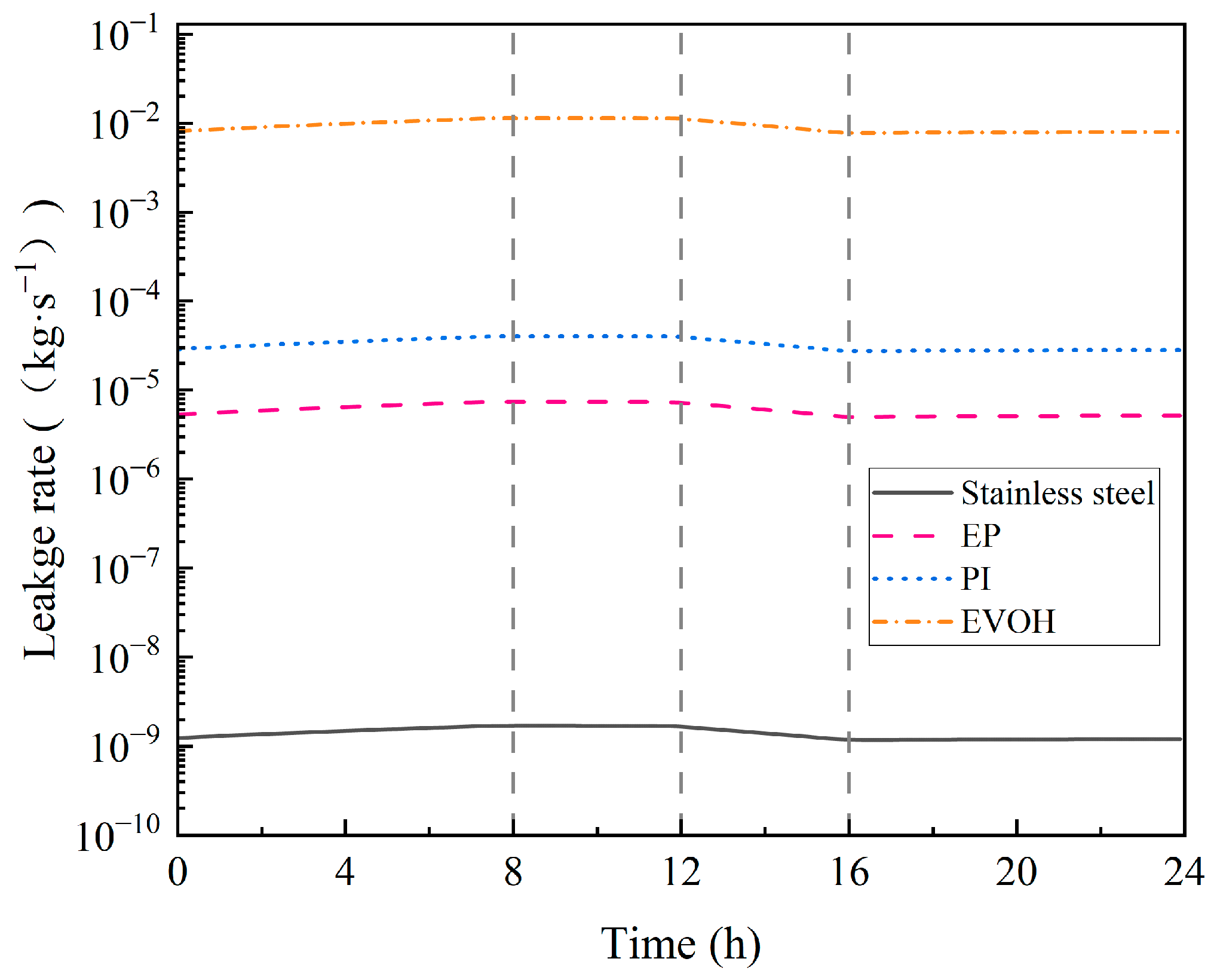 - Stainless steel has the best sealing performance, but it has drawbacks such as its high cost and susceptibility to hydrogen embrittlement (which may cause the deterioration of mechanical properties during long-term service). Epoxy resin (EP) offers excellent sealing, temperature resistance, cost-effectiveness, and no hydrogen embrittlement, making it ideal as a stainless steel alternative under medium–low-pressure and cost-sensitive conditions. Polyimide (PI) excels in anti-aging, high-temperature resistance, and sealing reliability, although it is costly. Ethylene–vinyl alcohol copolymer (EVOH) has poor hydrogen barrier performance and sensitivity to temperature/humidity, making it suitable only for stable environments. For anti-aging, PI is best, followed by EP, with EVOH being relatively weaker;