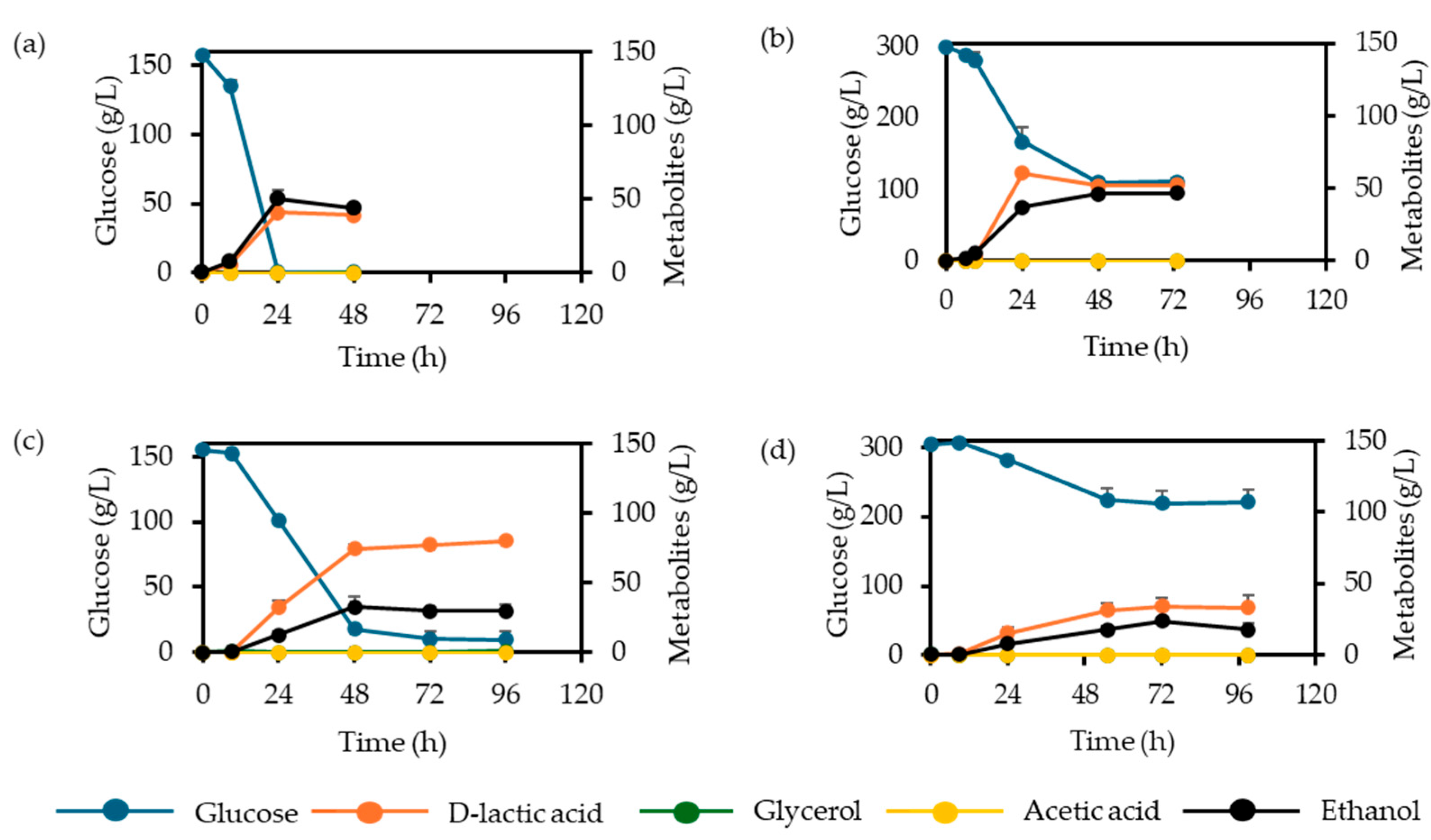 3.1. D-LA Production at Different Glucose Levels