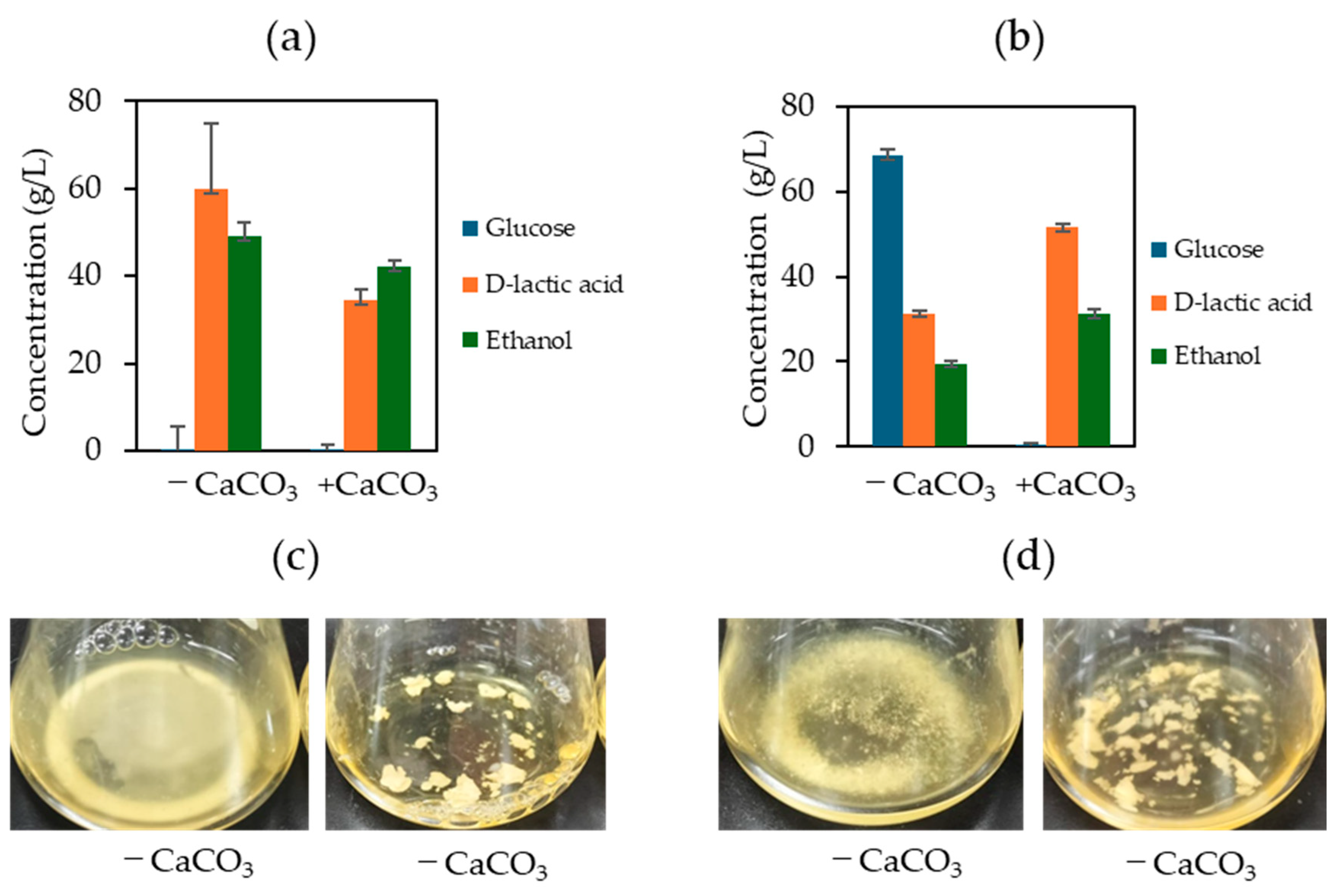 3.2. Calcium Carbonate Supplementation Effect on D-LA Production