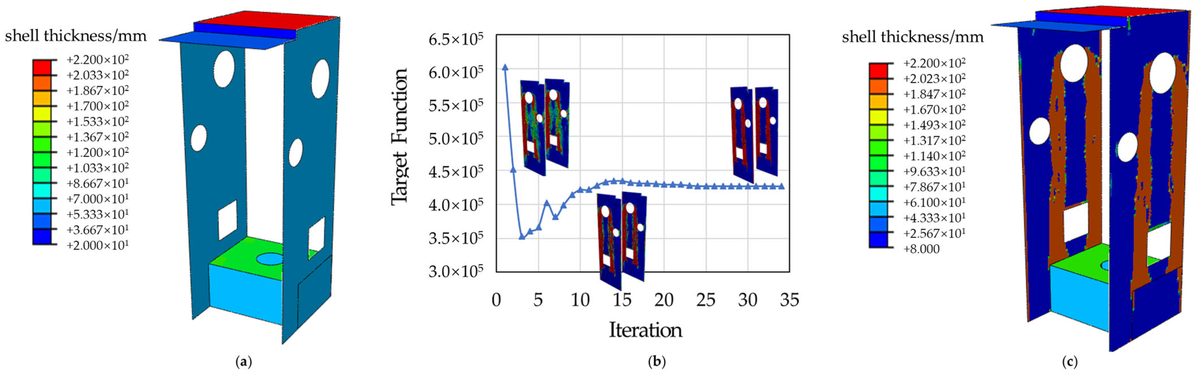 5.3. Size Optimization Based on Optimal Topological Structure