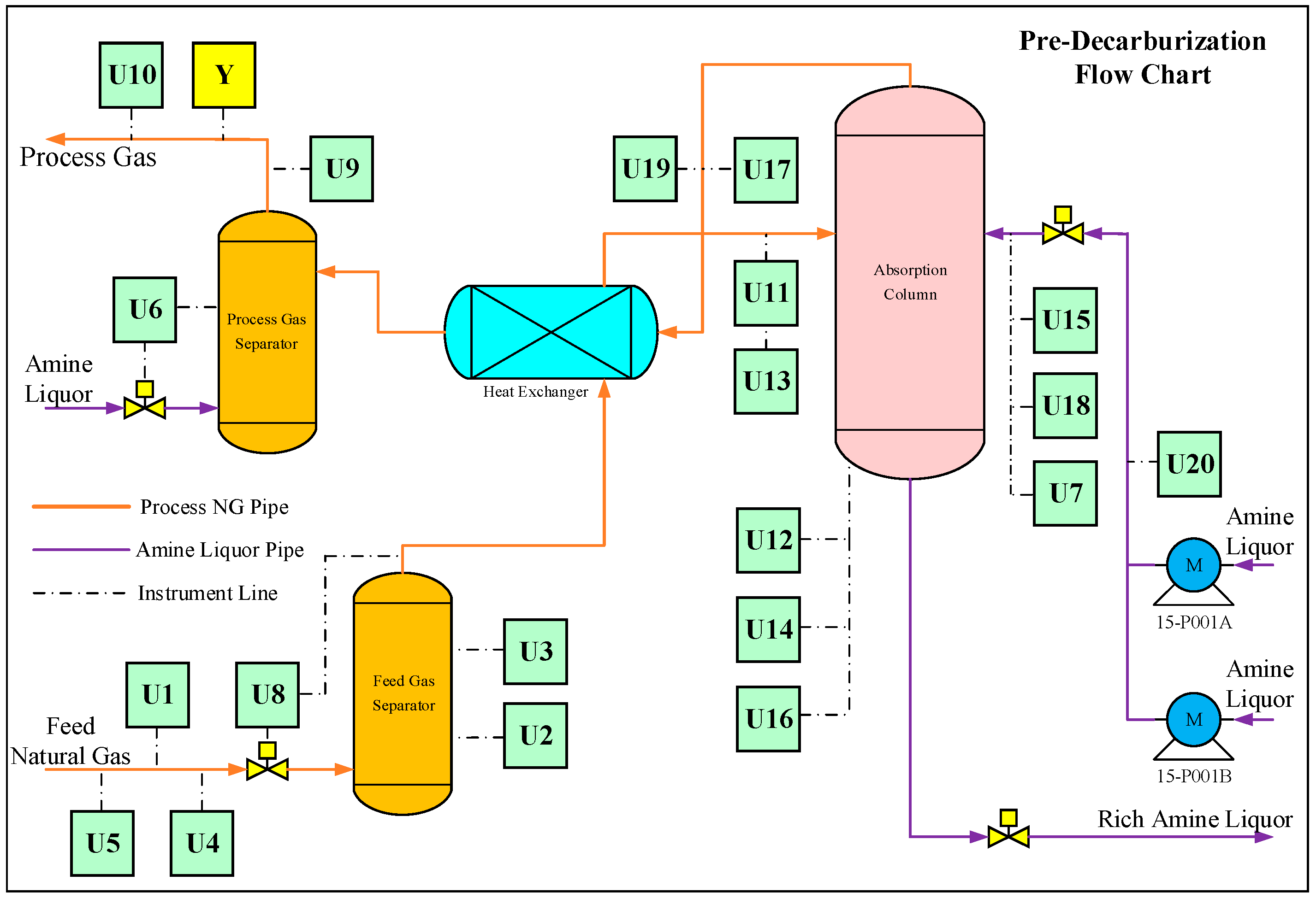 | U3 | Pressure Difference of Feed Gas Separator | U13 | Pressure of Process Gas to Absorption Column |