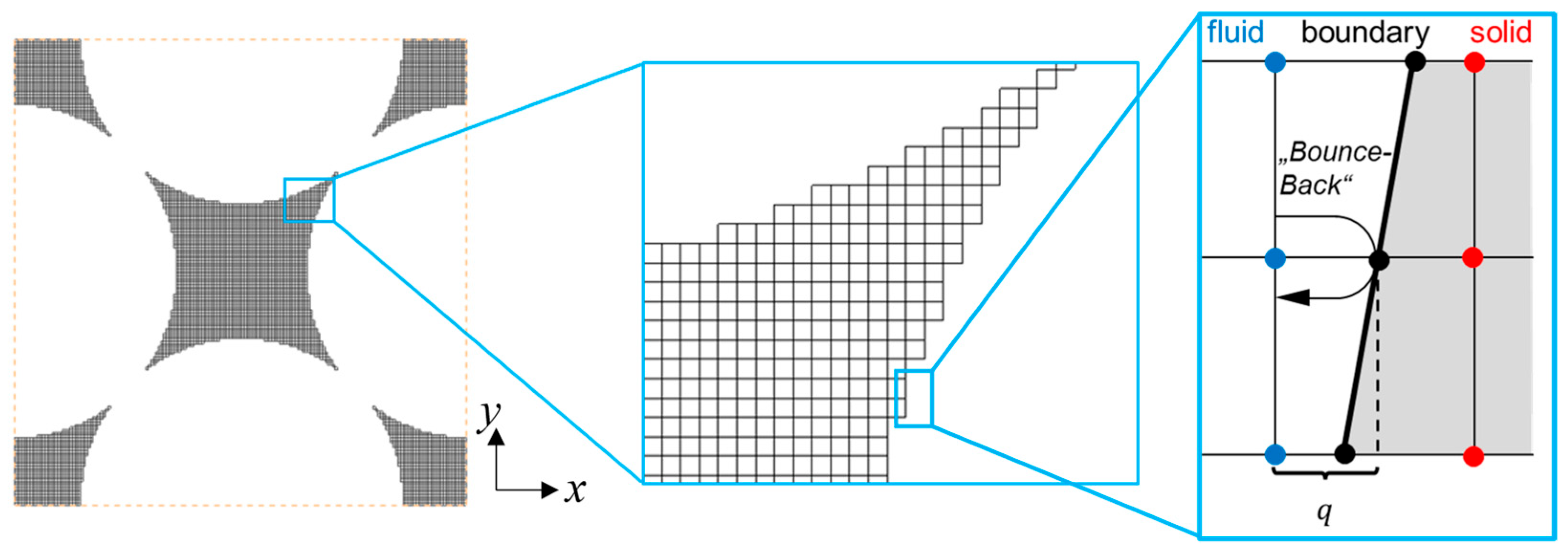 - Bouzidi, M.; Firdaouss, M.; Lallemand, P. Momentum Transfer of a Boltzmann-Lattice Fluid with Boundaries. Phys. Fluids 2001, 13, 3452–3459. [Google Scholar] [CrossRef]