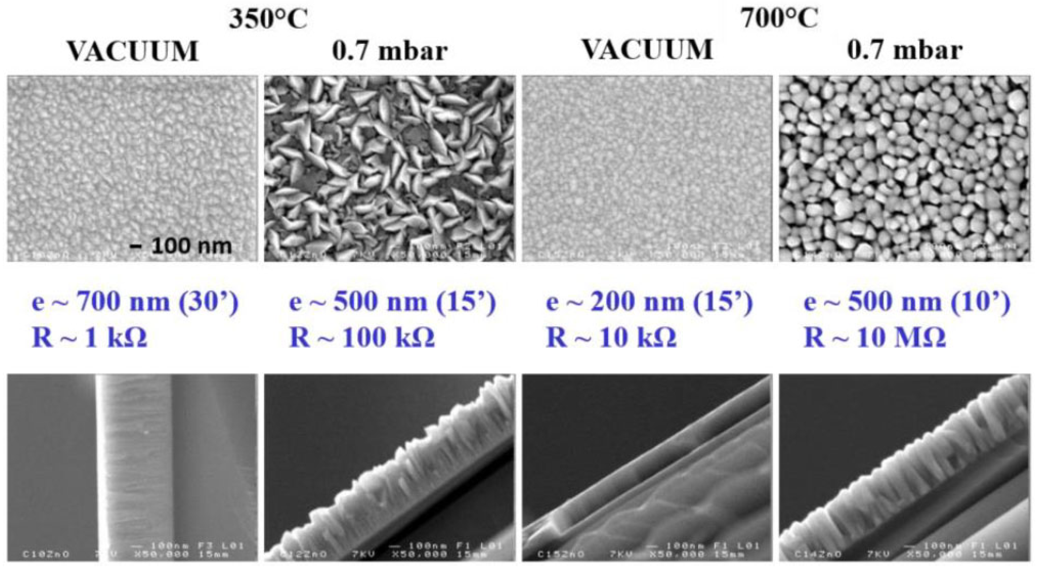 - Syed, K.; Krstulović, N.; Casanova-Cháfer, J.; Llobet, E.; Güell, F.; Martínez-Alanis, P.R.; Marciuš, M.; Shagieva, E.; Ristić, D.; Gebavi, H.; et al. The role of the pulsed laser deposition in different growth atmospheres on the gas-sensing properties of ZnO films. Sens. Actuators B Chem. 2023, 382, 133454. [Google Scholar] [CrossRef]