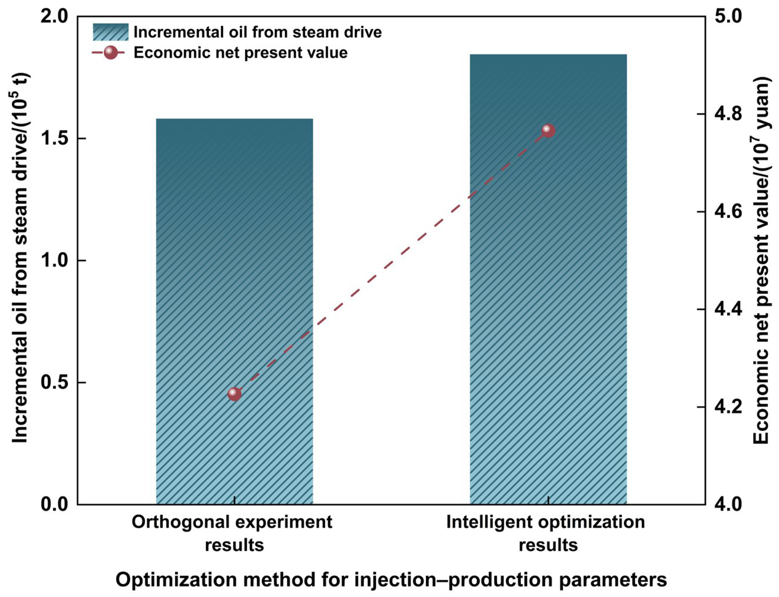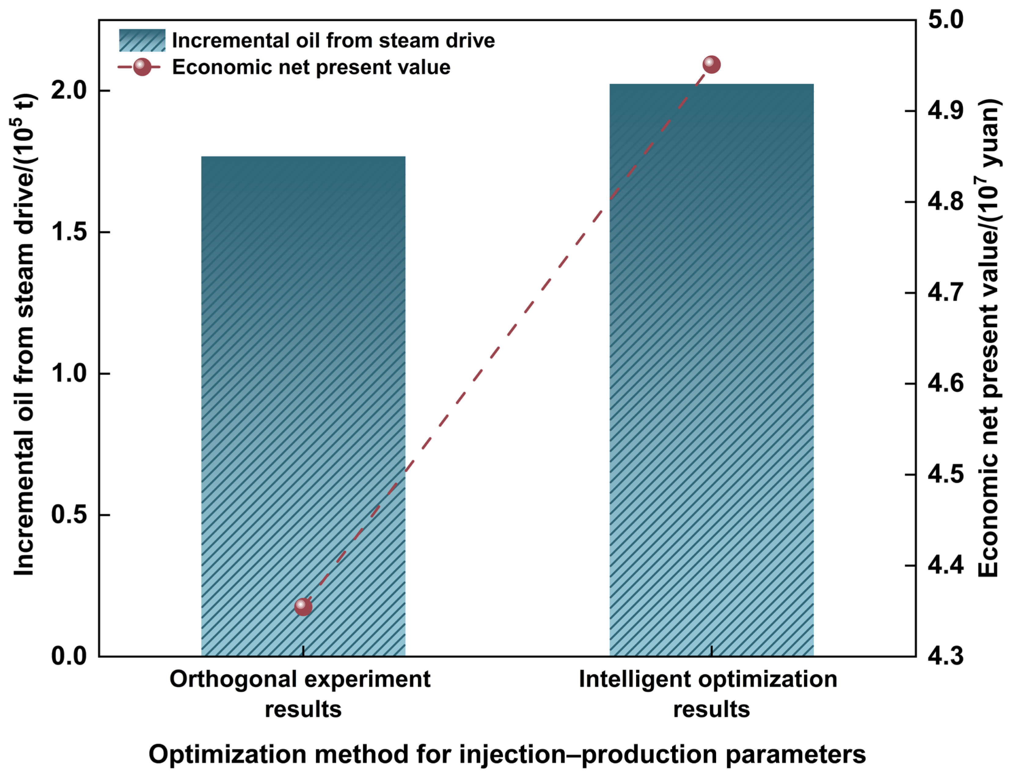 Comparison of orthogonal experimental design and intelligent optimization results for intermittent steam injection.