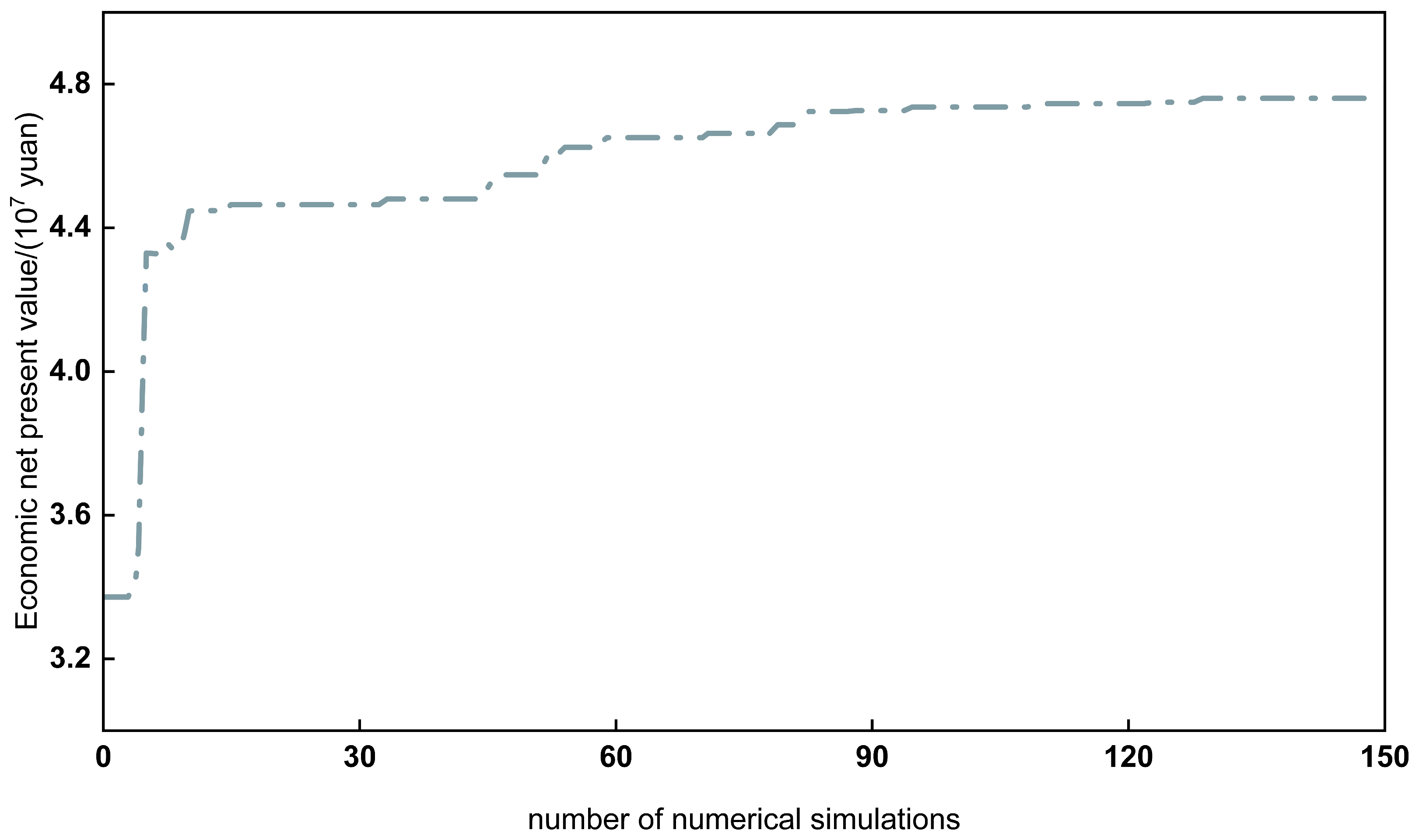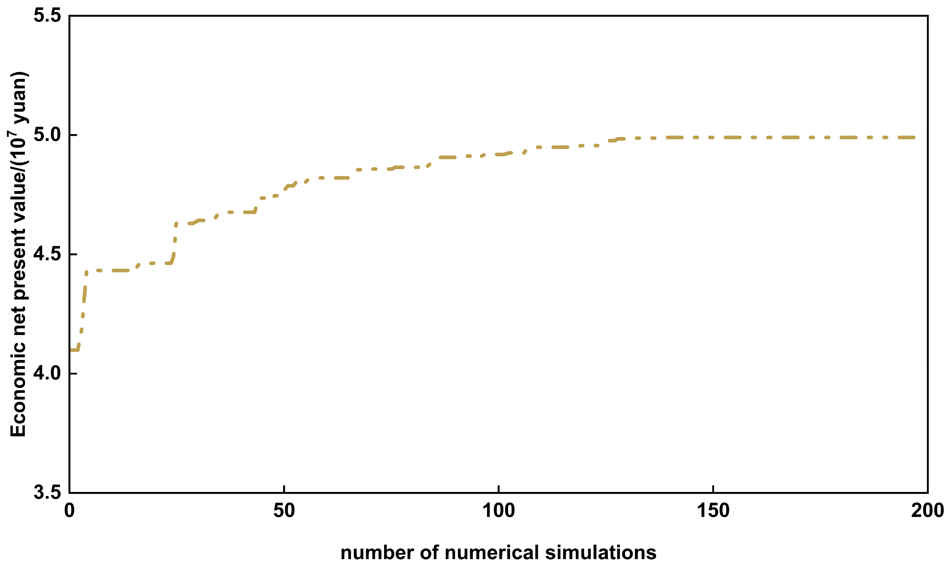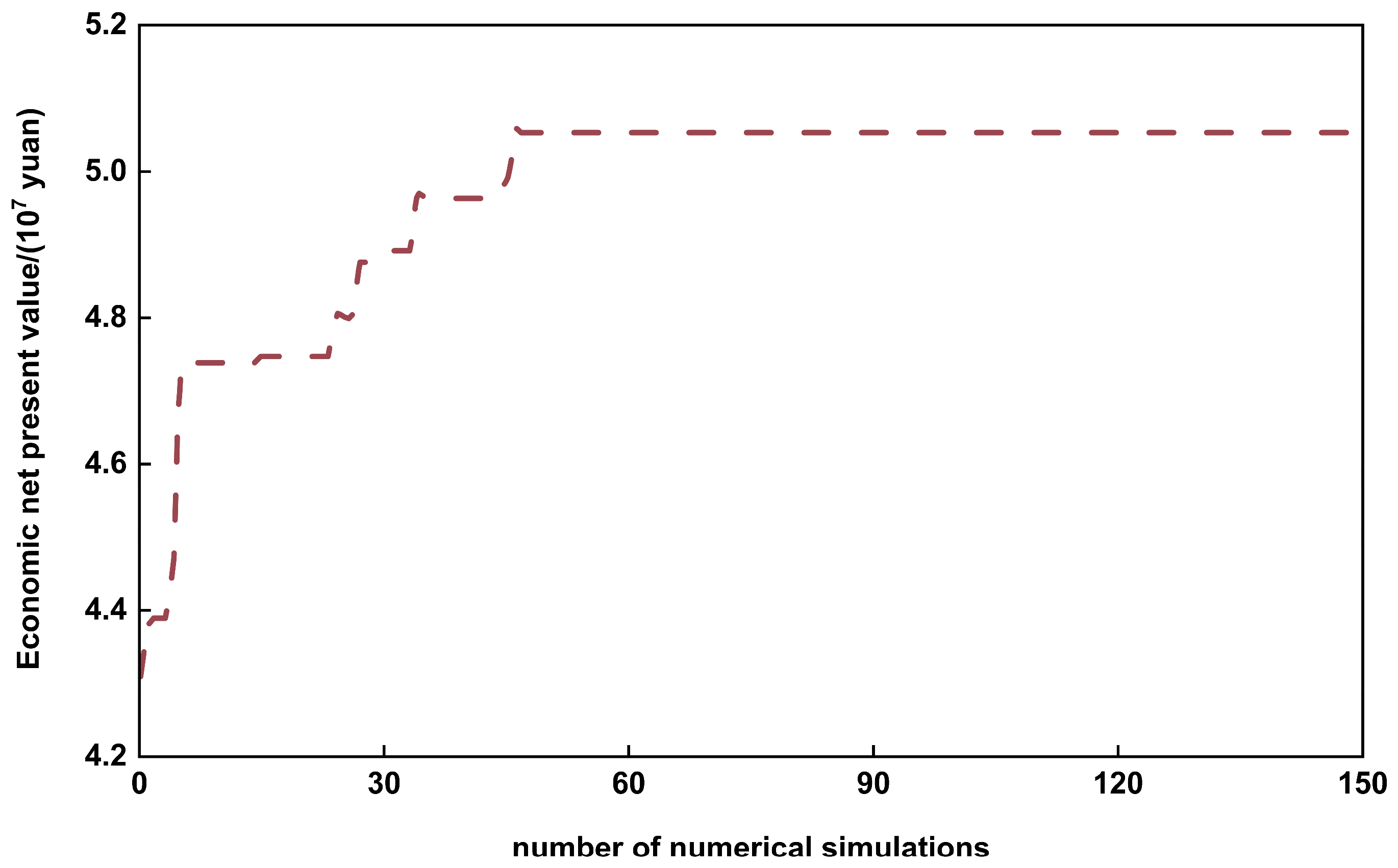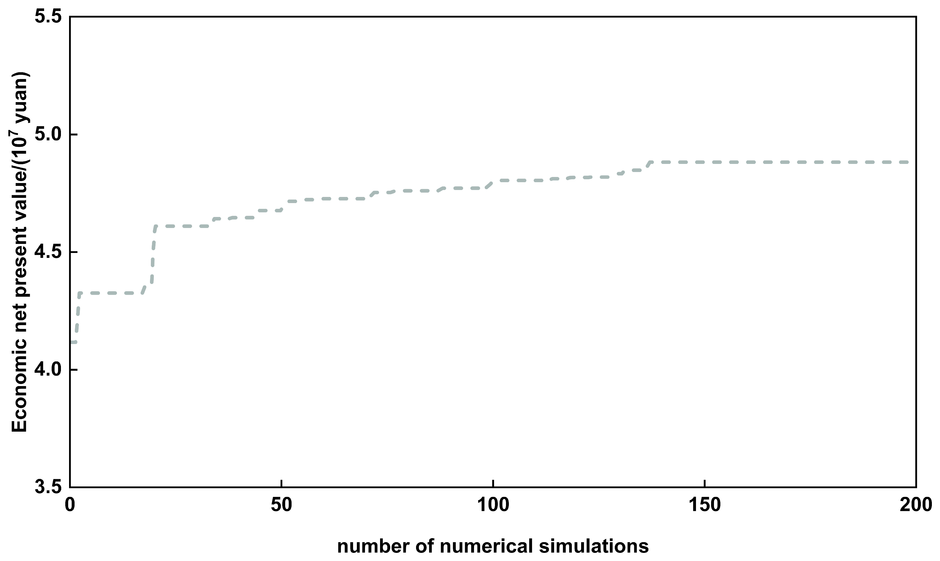 | Injection Rate/(m3·d−1) | Injection Dryness | Injection Temperature/°C | Liquid Production Rate/t·d−1 | Injection Time/d | Gas-Oil Ratio Timing/d | Injection Stop Time/d | Incremental Oil/t | ENPV/104 CNY |