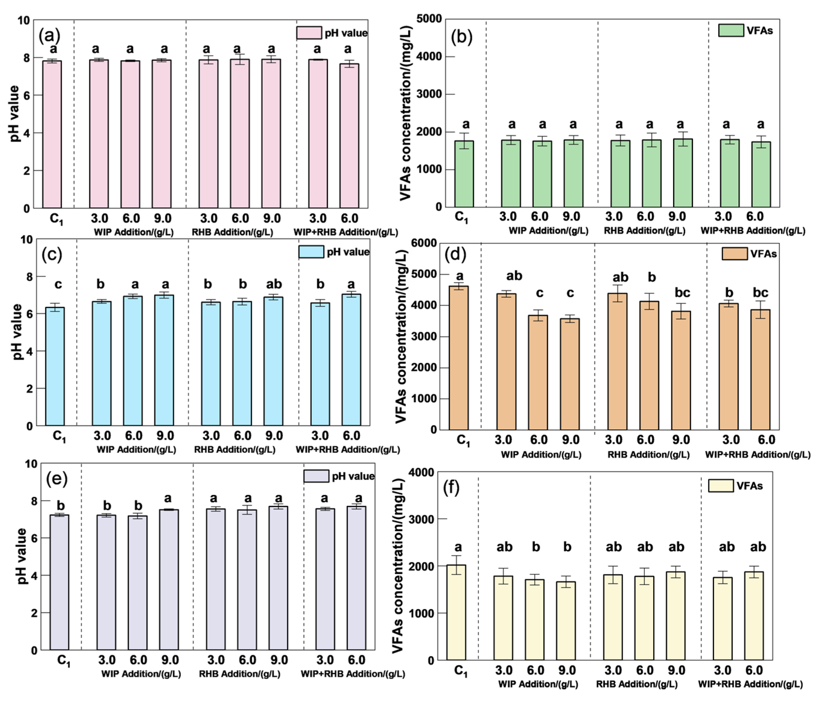 3.3.1. VFA Concentration and pH Value