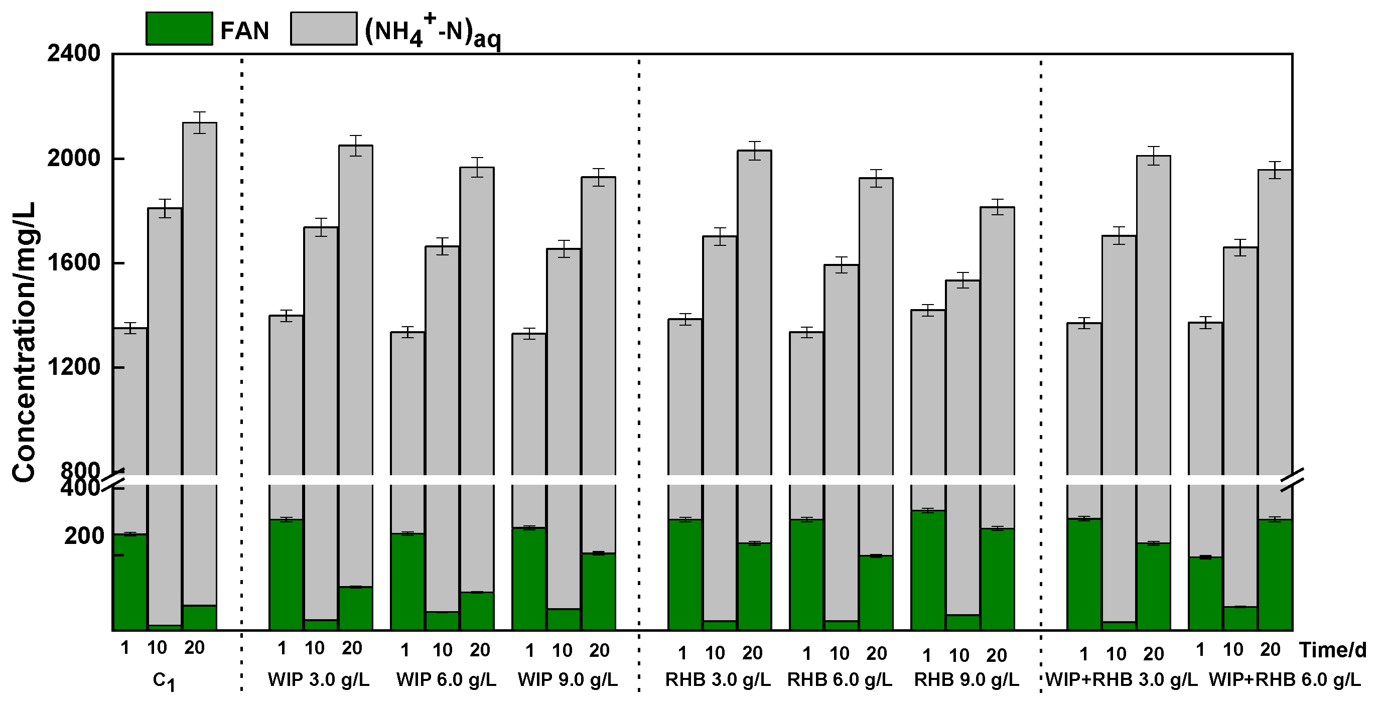| TAN (mg/L) | 1103.5 ± 11.3 | 135.5 ± 9.74 | ||