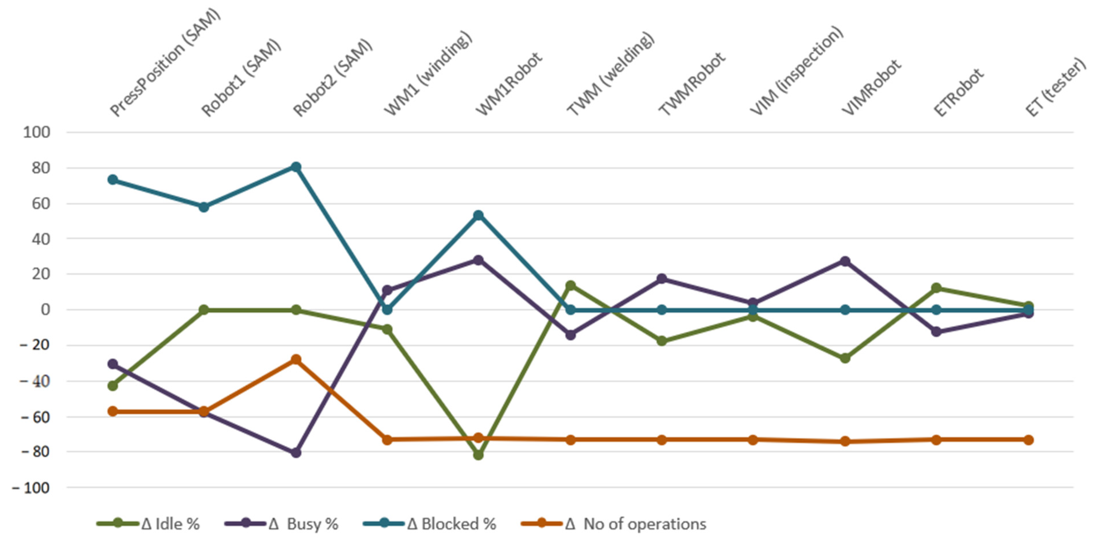 | WM1 (winding) | −10.93 | +11.04 | 0.00 | −73 | Idle ↑, Busy ↓, Blocked —, Ops ↑ | Mixed (positive throughput, lower utilization) |
