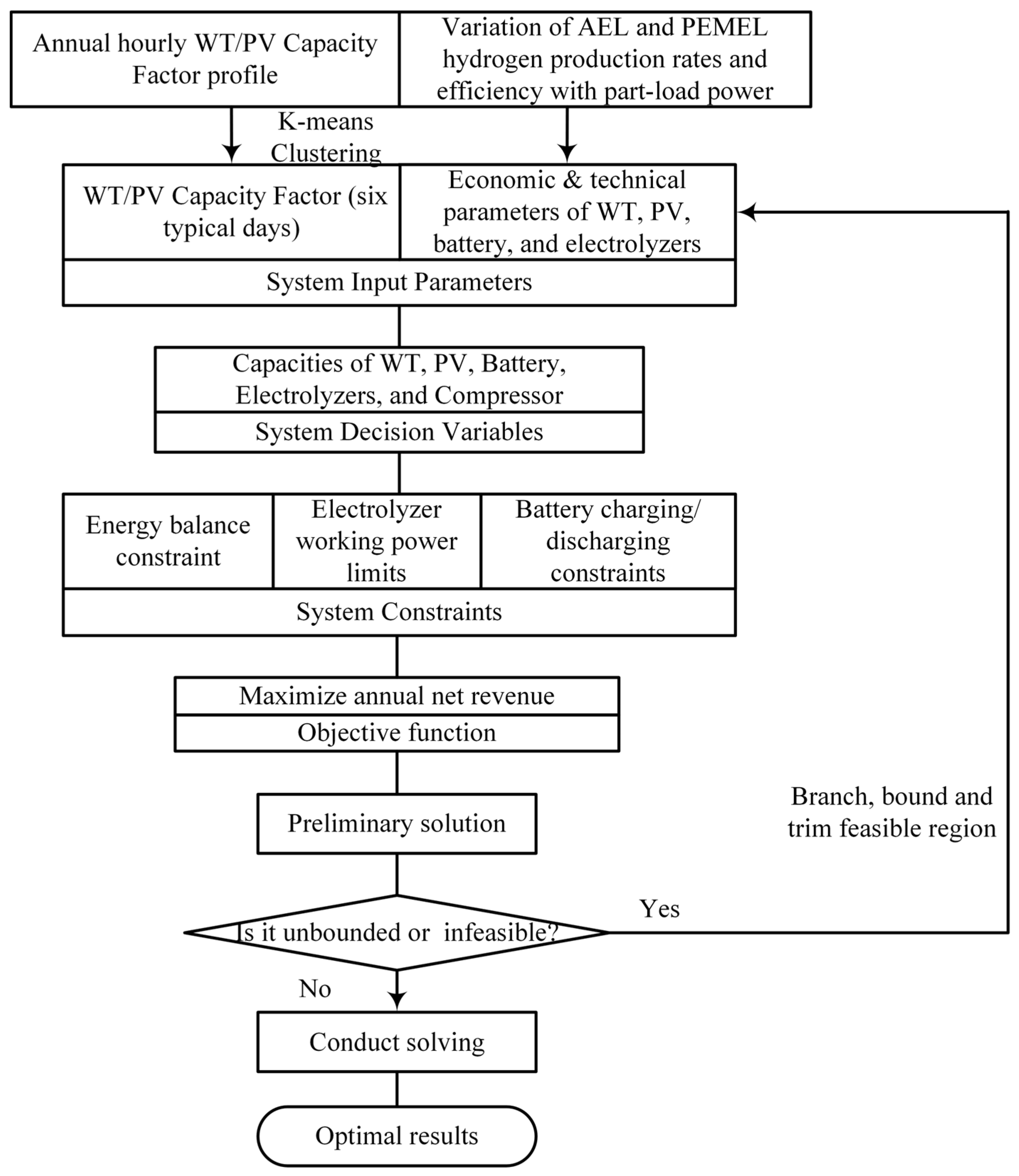 16] developed a design and operation framework for hydrogen production that accounts for the transitional states of multiple AEL units, enabling the minimization of LCOH under grid-connected photovoltaic (PV) and wind turbine (WT) power conditions. Ibáñez-Rioja et al. [