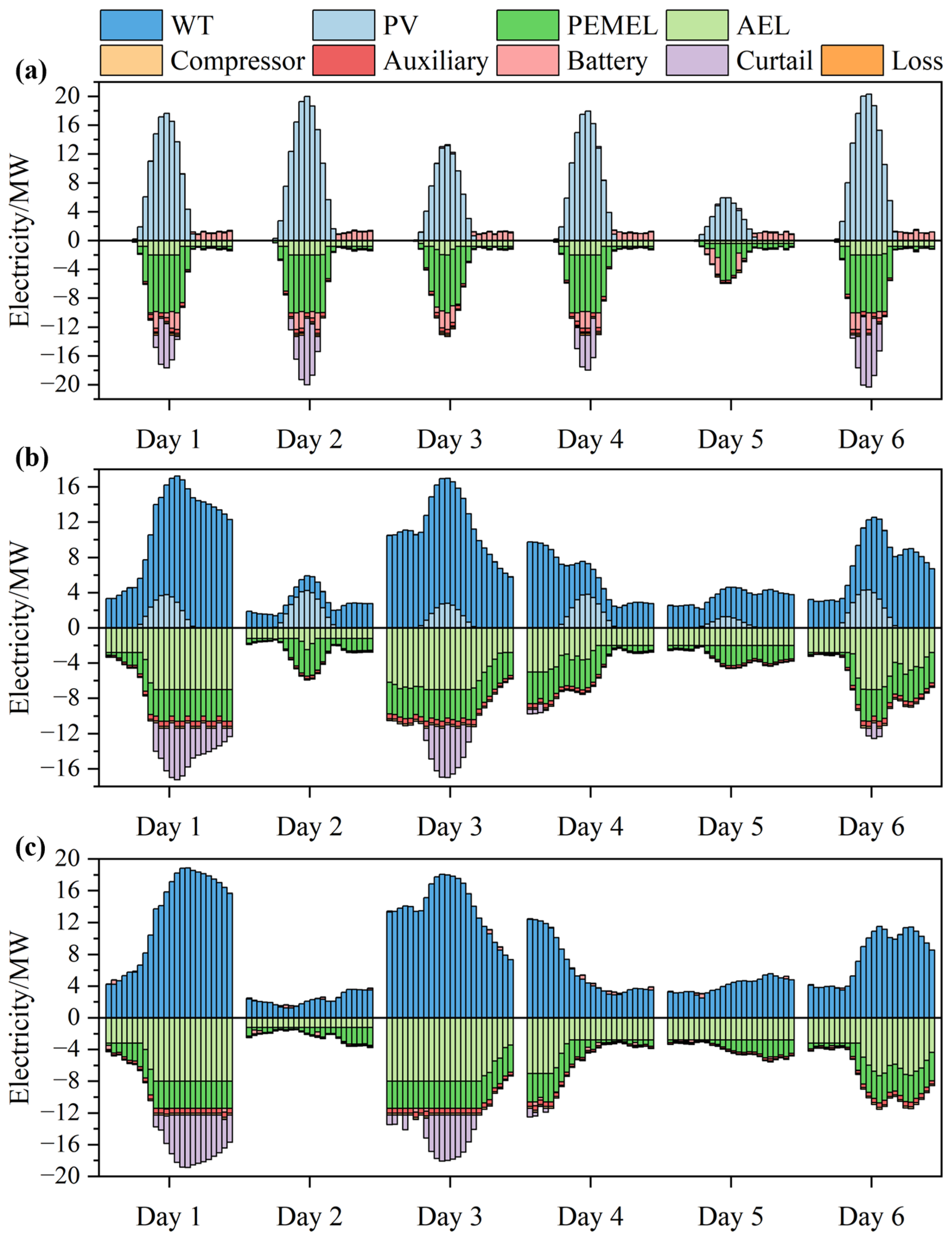 17] analyzed how varying hydrogen supply rates influence LCOH in wind–solar–AEL systems. Fang et al. [