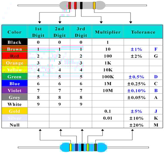 - IEC 60062:2016; Marking Codes for Resistors and Capacitors. International Electrotechnical Commission: Geneva, Switzerland, 2016.