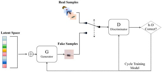 Generative adversarial networks represent a game-theoretic deep learning model architecture, comprising a generator and a discriminator that evolve through adversarial training [29], as illustrated in Figure 4. The objective of the generator is to maximize its ability to deceive the discriminator by producing realistic sample data from random noise, so that the discriminator is unable to distinguish between real and generated data. Conversely, the discriminator learns to differentiate between generated and real data, aiming to maximize its discrimination capability to accurately classify inputs as either real or generated [30]. During training, the generator generates data that progressively approximate the real data distribution with higher accuracy, while the discriminator simultaneously keeps on enhancing its recognition capabilities, culminating in generated data that are nearly indistinguishable from real data [31].