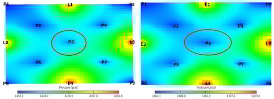 Figure 4 shows the distribution map of remaining oil after 10 years of normal production without repeated fracturing production and the distribution map of remaining oil after 4 years of normal production and 10 years of repeated fracturing production in the fifth year. From the perspective of pressure distribution: (1) The pressure level around the re-fracturing well with fracture steering is significantly lower than that of the fracturing non-steering well, and lower than that of other production wells in the same block, which is more conducive to oil-water flow; (2) After repeated fracturing, the pressure spread range is larger, and the steering fracture effectively communicates the reservoir in the far well area, increases the drainage area, and improves the effective utilization degree. (3) The pressure propagation in the near wellbore zone is uniform, which alleviates the phenomenon of low pressure in the near wellbore caused by the long time of conventional fracturing.