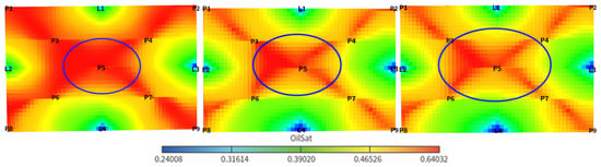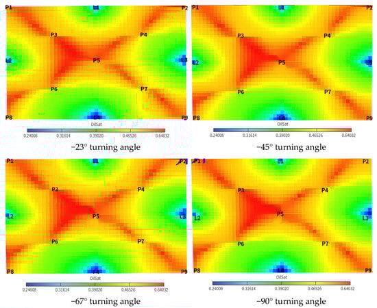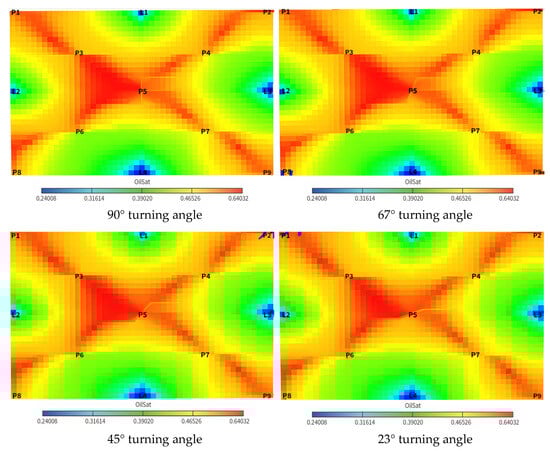 Then, the temporary plugging repeated fracturing was carried out in the fourth year, and the final oil saturation distribution map of different turning angles was shown in Figure 9.