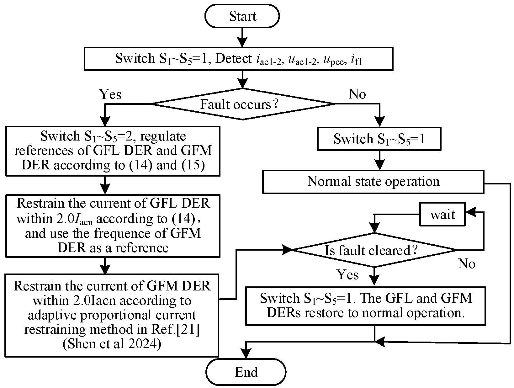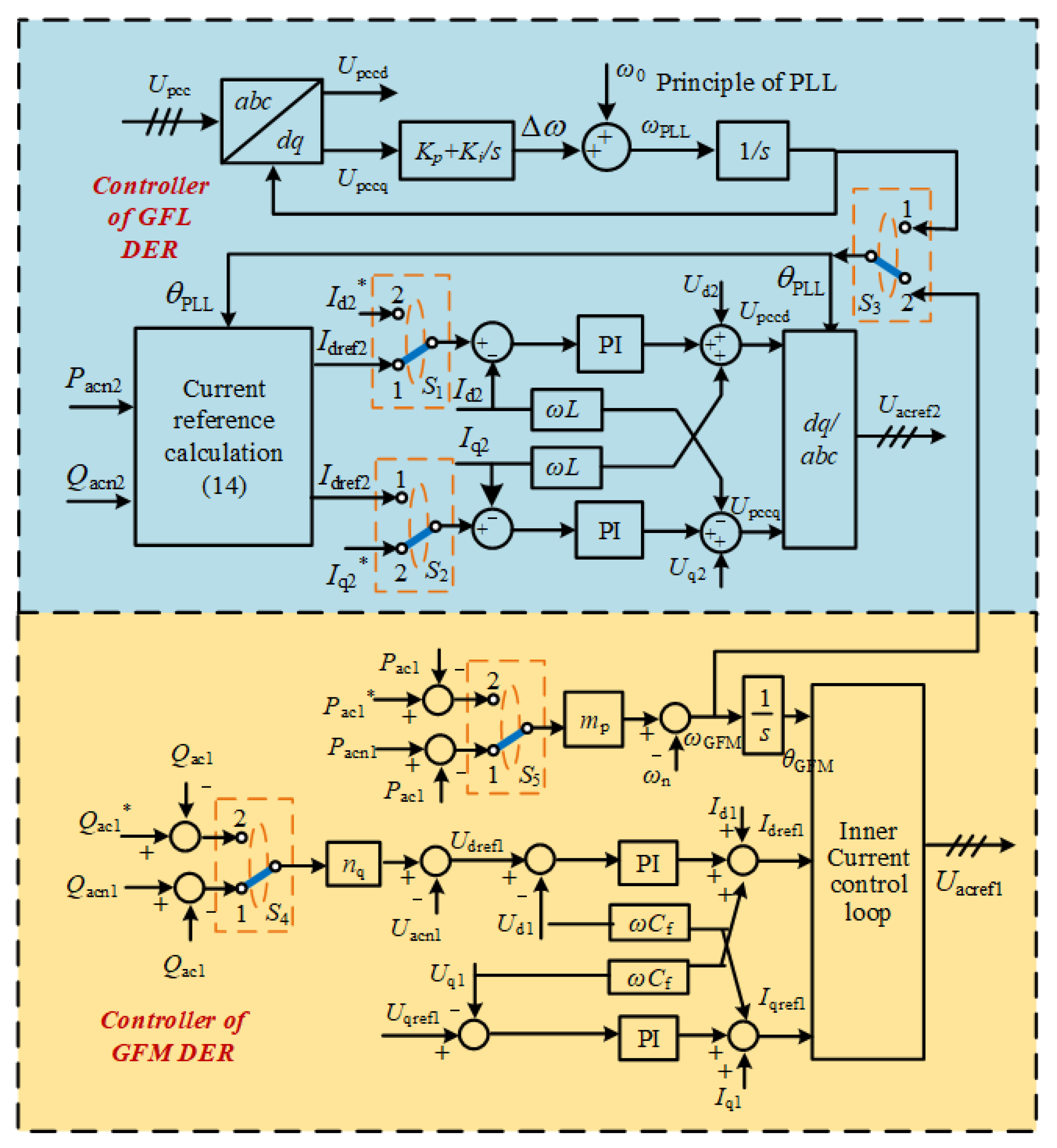 - In the proposed method, during the transient period, the GFM DER shares the frequency it generates with the GFL DER. Meanwhile, both of them need to regulate the active and reactive power references to enhance the system stability.