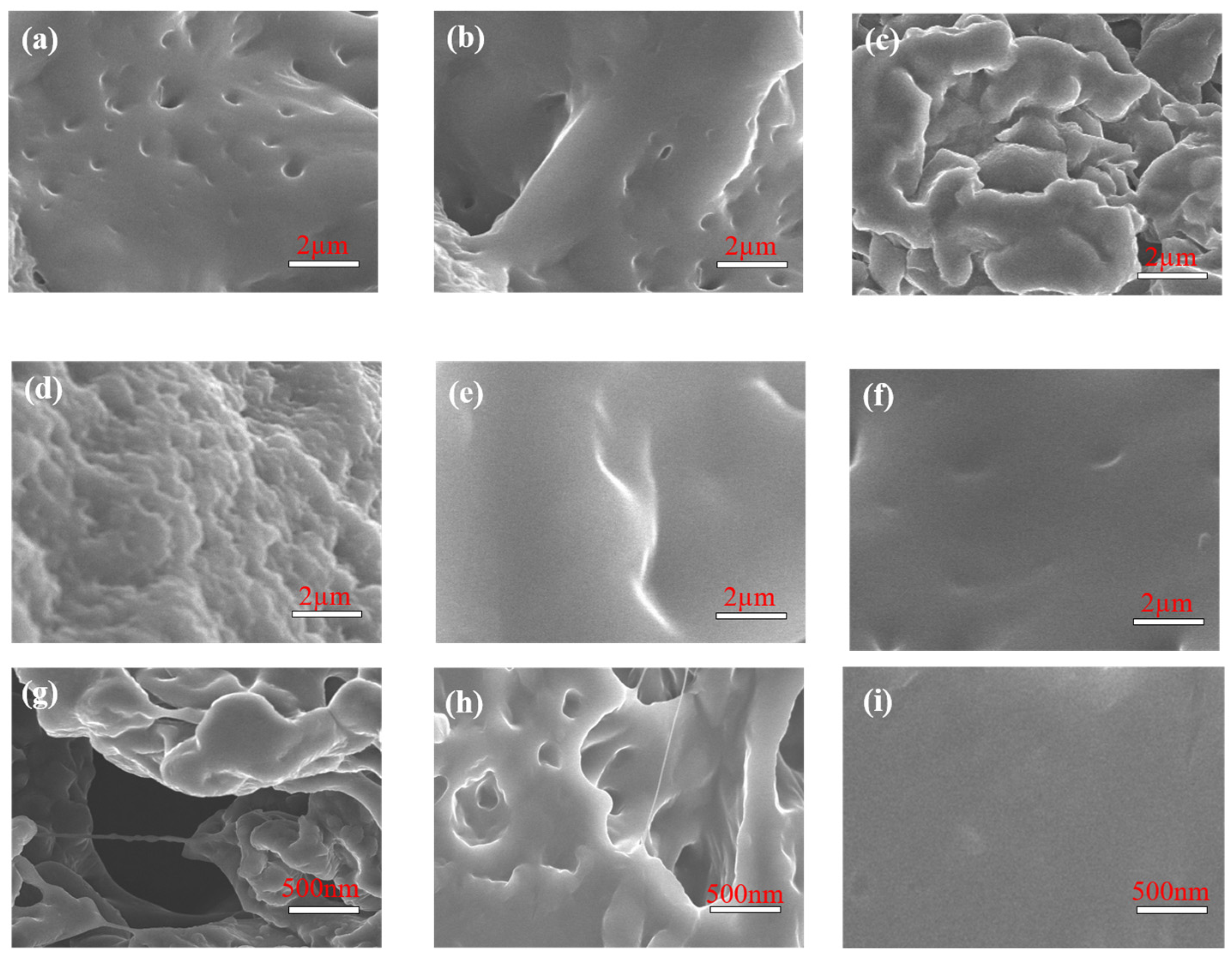 Figure 8f), although the bulk density of gel microspheres decreases locally, and a few microspheres have small defects on the surface, the mud cake as a whole still maintains a continuous and compact structure without penetrating pores, showing excellent high-temperature plugging resistance. The above microstructure evolution rules show that the XFFD plugging agent can effectively maintain the compactness of the mud cake in a high-temperature environment by constructing a dynamic and stable polymer network structure. The self-healing mechanism can realize the dynamic repair of defective parts through the thermal movement of molecular chains, which provides an important material support for wellbore stability in deep formation drilling. This unique temperature-responsive plugging property gives XFFD significant application advantages in a high-temperature drilling fluid system. High-resolution images showing the “pores,” “cracks,” and “self-healing” are presented in