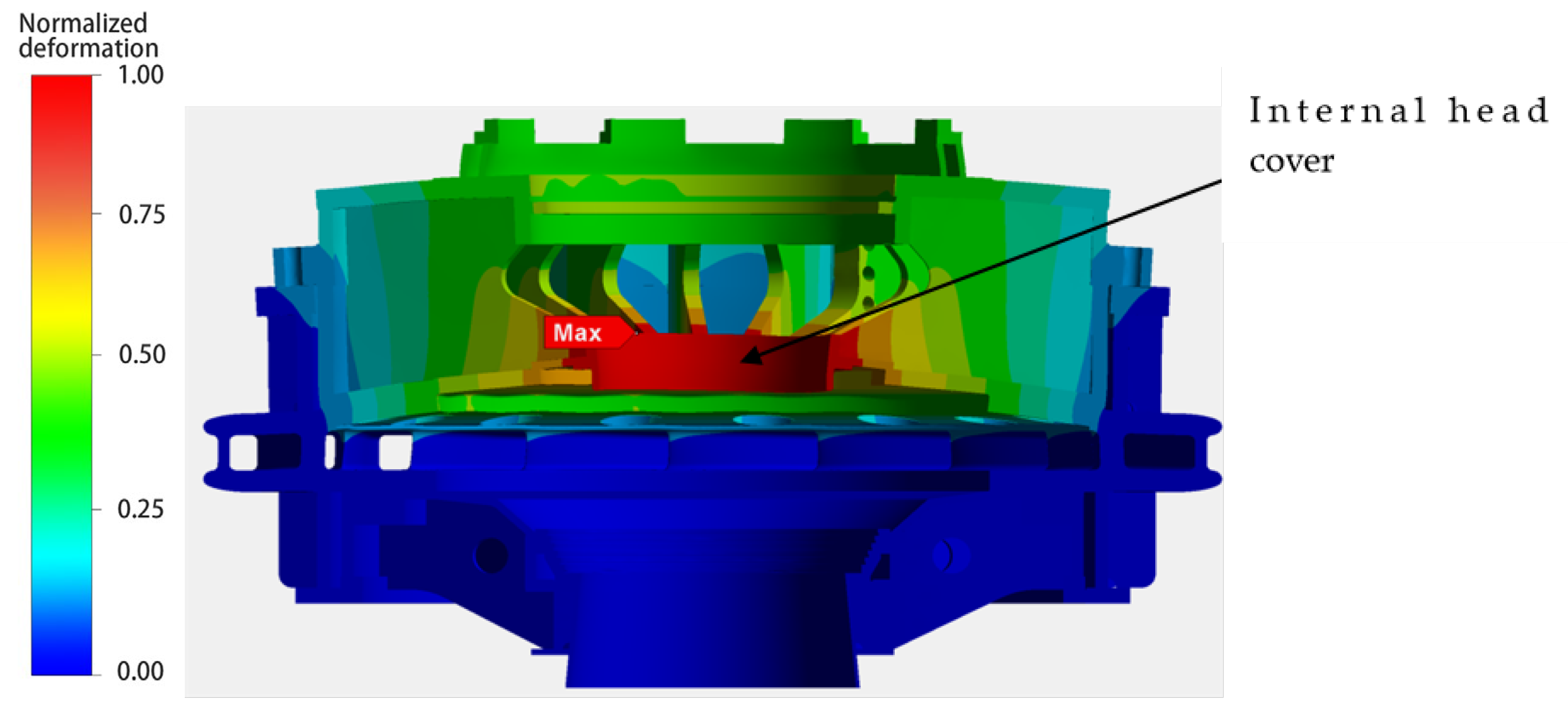 | Maximum stress value of the head cover | 1 | 0.65 |