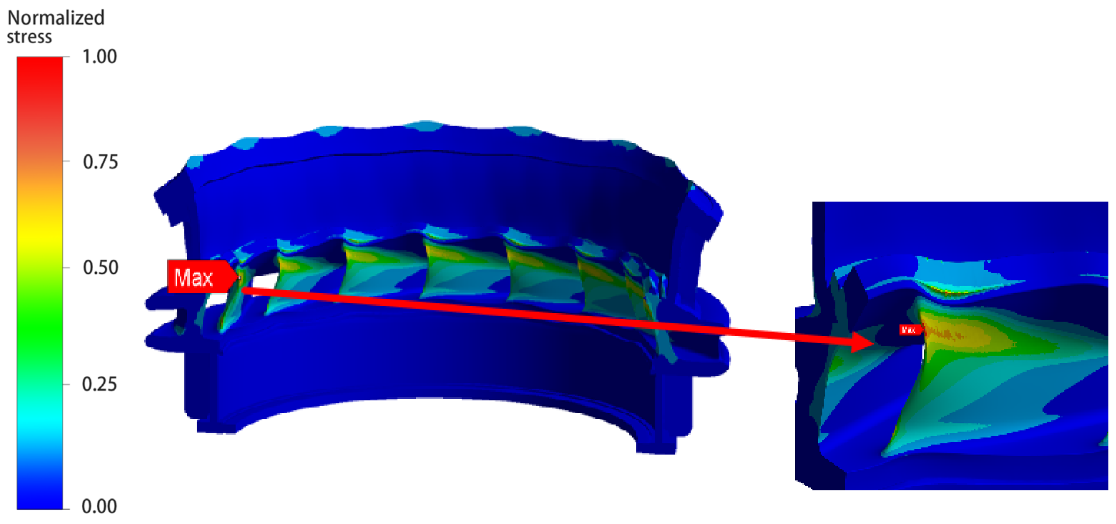 | Maximum stress value of the stay ring | 1 | 0.94 |