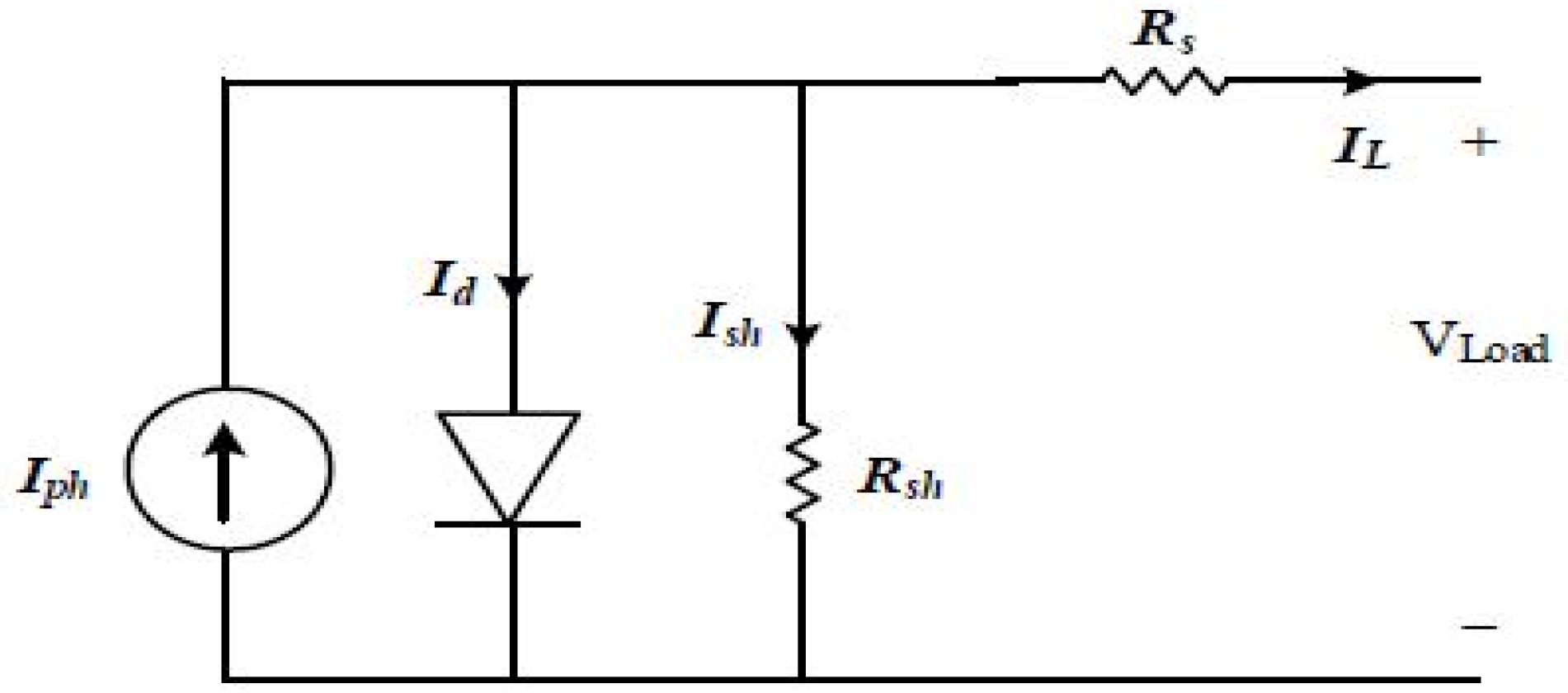 The overall PV system was developed in MATLAB/Simulink, where the main block represents a subsystem that encapsulates the entire 250 kW array. The system comprises four main string groups: the first three groups each contain a single series-connected string of seven SunPower SPR-415E-WHT-D modules, while the fourth group includes 85 parallel strings, each formed by seven series-connected modules. In total, the complete array contains 88 strings, yielding a rated capacity of 250 kW. This modular configuration facilitates precise fault injection and measurement at both the string and module levels, while maintaining a clear and well-organized top-level schematic. All four strings are connected in parallel to form the overall PV array. The total output voltage of the system is approximately 510.3 V (7 × Vmp), while the total output current is around 500.72 A, resulting in an estimated power output of 255.5 kW. This modular configuration supports the simulation of realistic fault conditions and enables the generation of labeled voltage and power data. The extracted data were subsequently utilized to train and evaluate fault detection models based on ANN. The electrical behavior of the PV module is represented by the widely adopted one-diode equivalent circuit, as illustrated in