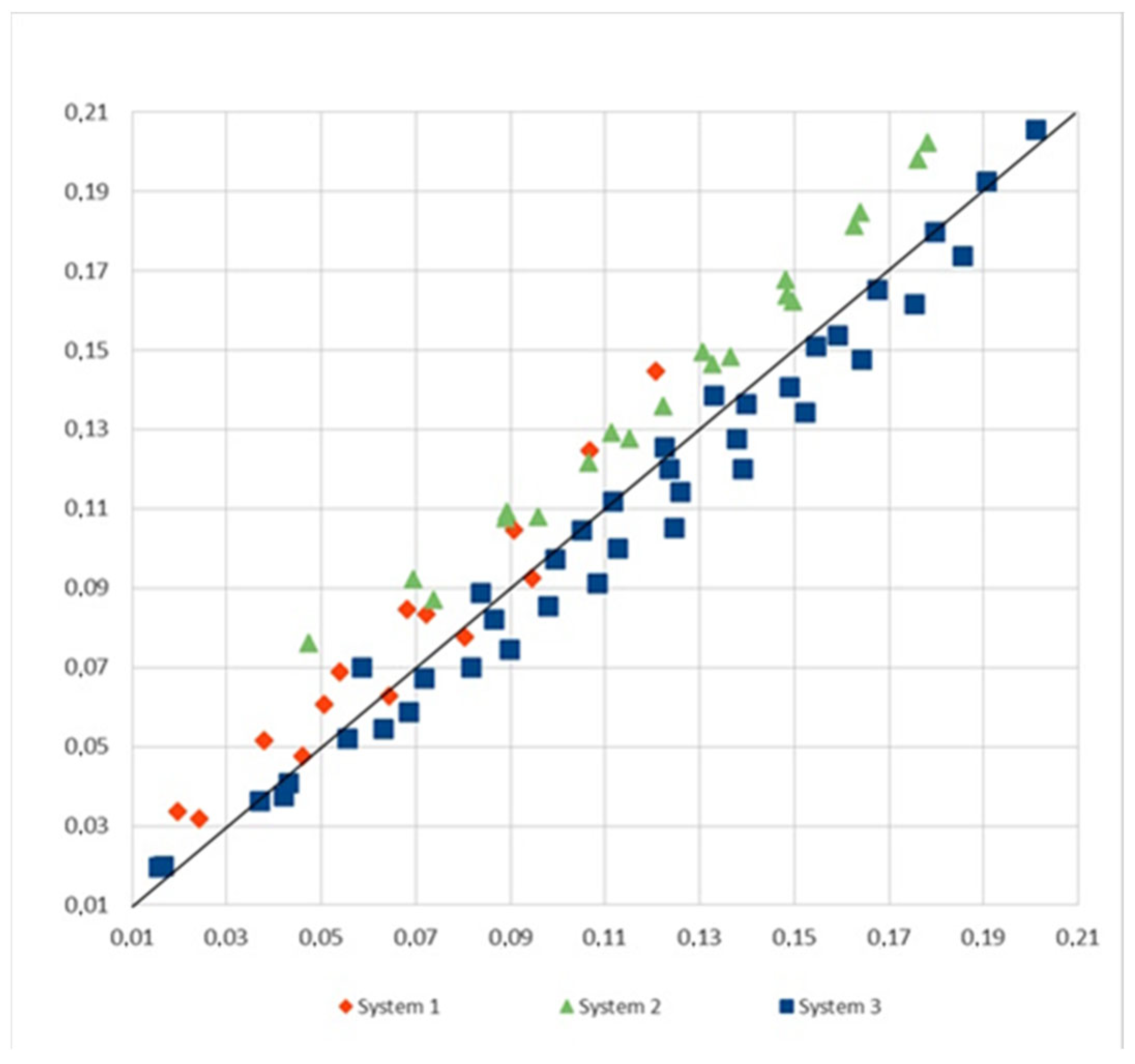 Figure 7 and confirmed by the coefficient of determination of the obtained regression models, which is close to unity, and the value of MAPE (Mean Absolute Percentage Error), which does not exceed 10%.