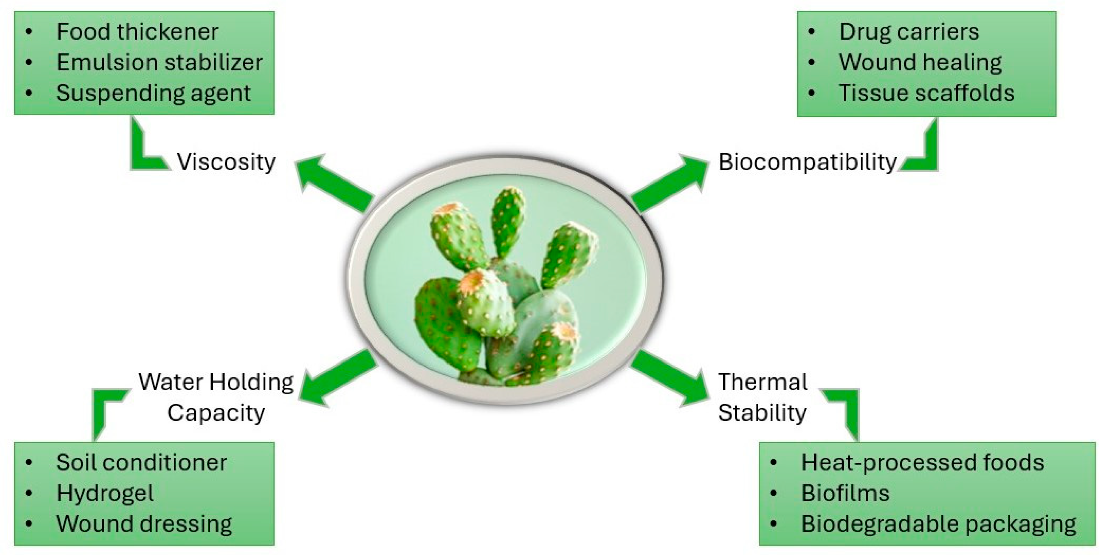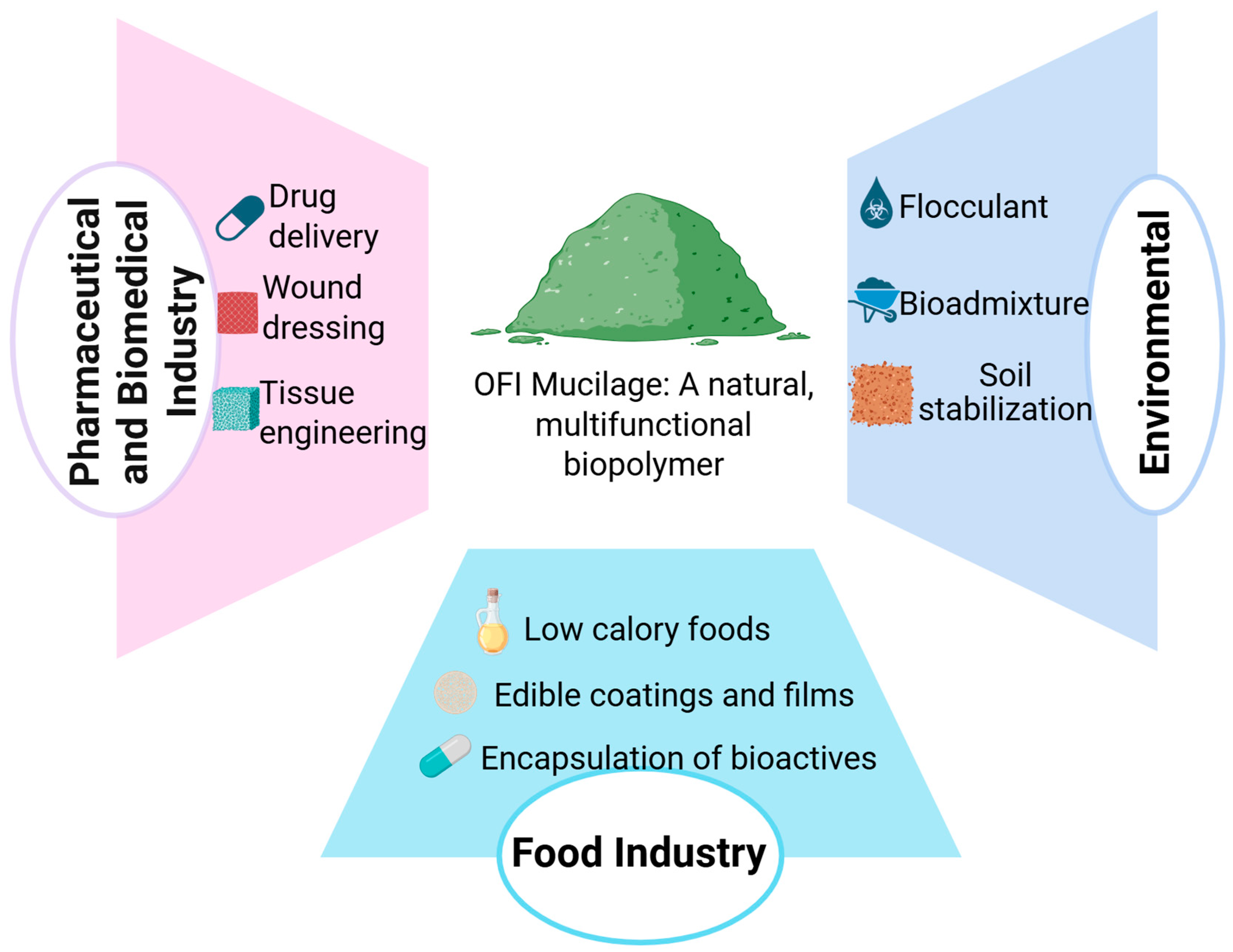 Mukaila, Y.O.; Adeyemi, J.O.; Fawole, O.A. Towards Sustainable Biopolymer Innovation: A Review of Opuntia ficus-indica Mucilage. Processes 2025, 13, 3837. https://doi.org/10.3390/pr13123837