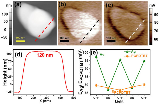 - Wu, Y.; Wang, D.; Liu, J.; Cai, H.; Zhang, Y. Atomic Force Microscope Study of Ag-Conduct Polymer Hybrid Films: Evidence for Light-Induced Charge Separation. Nanomaterials 2020, 10, 1819. [Google Scholar] [CrossRef] [PubMed]