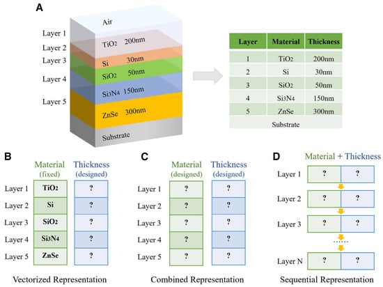 - Ma, T.; Ma, M.; Guo, L.J. Optical multilayer thin film structure inverse design: From optimization to deep learning. iScience 2025, 28, 112222. [Google Scholar] [CrossRef]