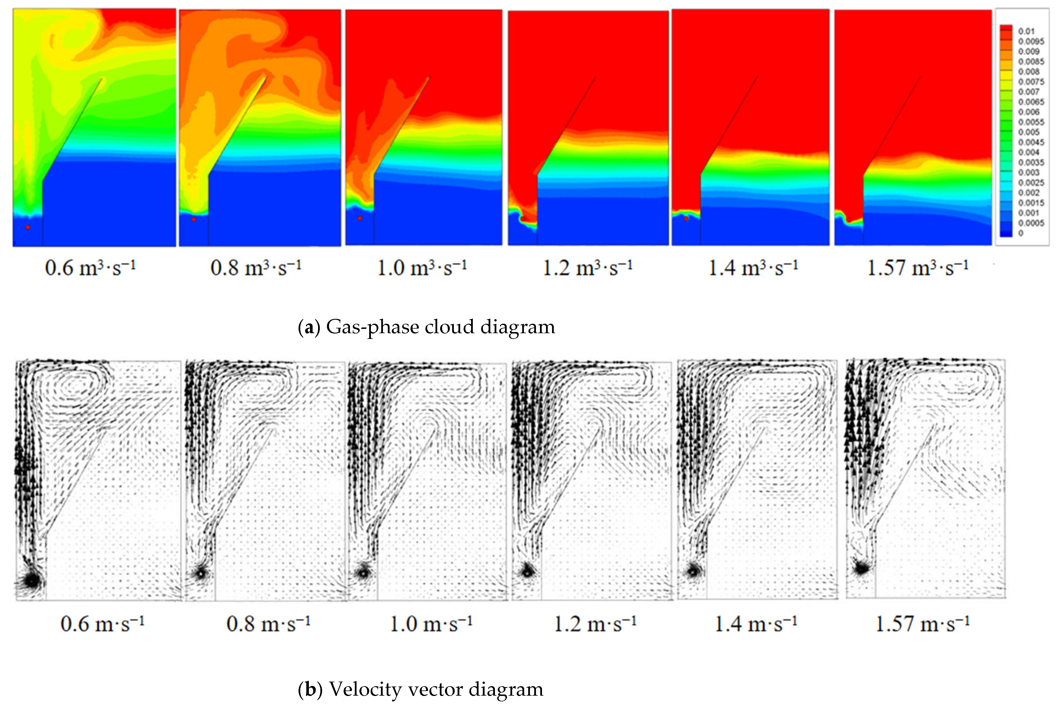 4. Results: Distribution Characteristics of Flow Field in Air Flotation Zone
