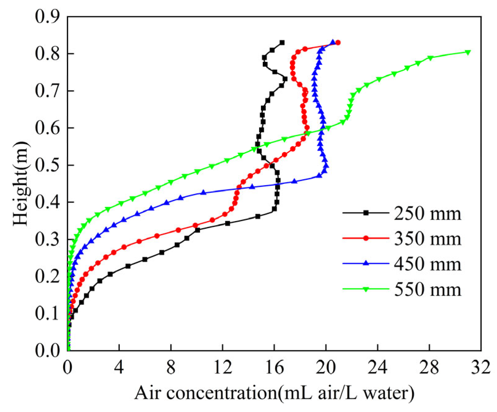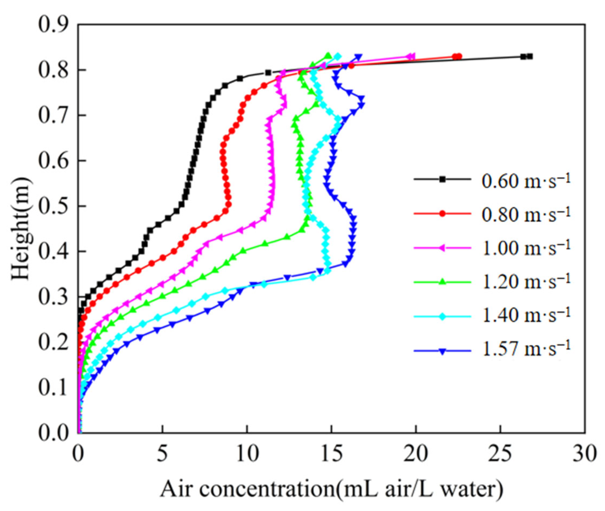 3.3. Effect of Air Holdup on Flow Field