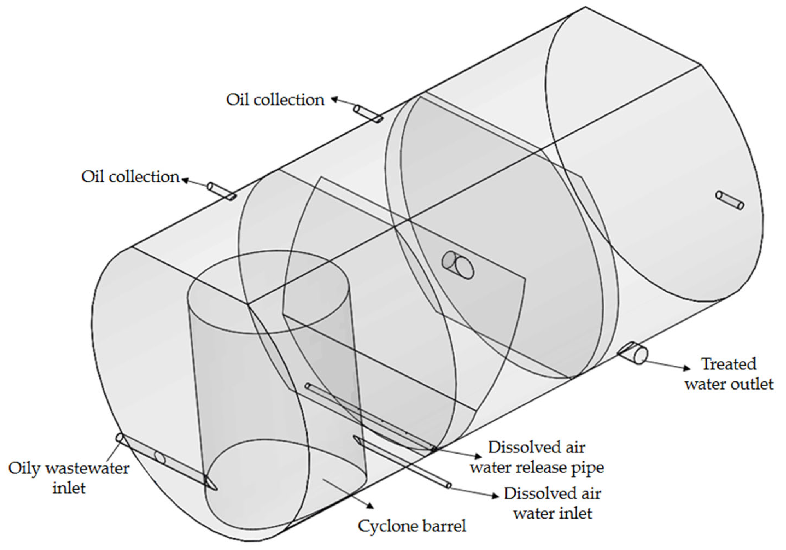 - Huang, Q.; Long, X. Analysis of the influencing factors on oil removal efficiency in large-scale flotation tanks: Experimental observation and numerical simulation. Energies 2020, 13, 927. [Google Scholar] [CrossRef]