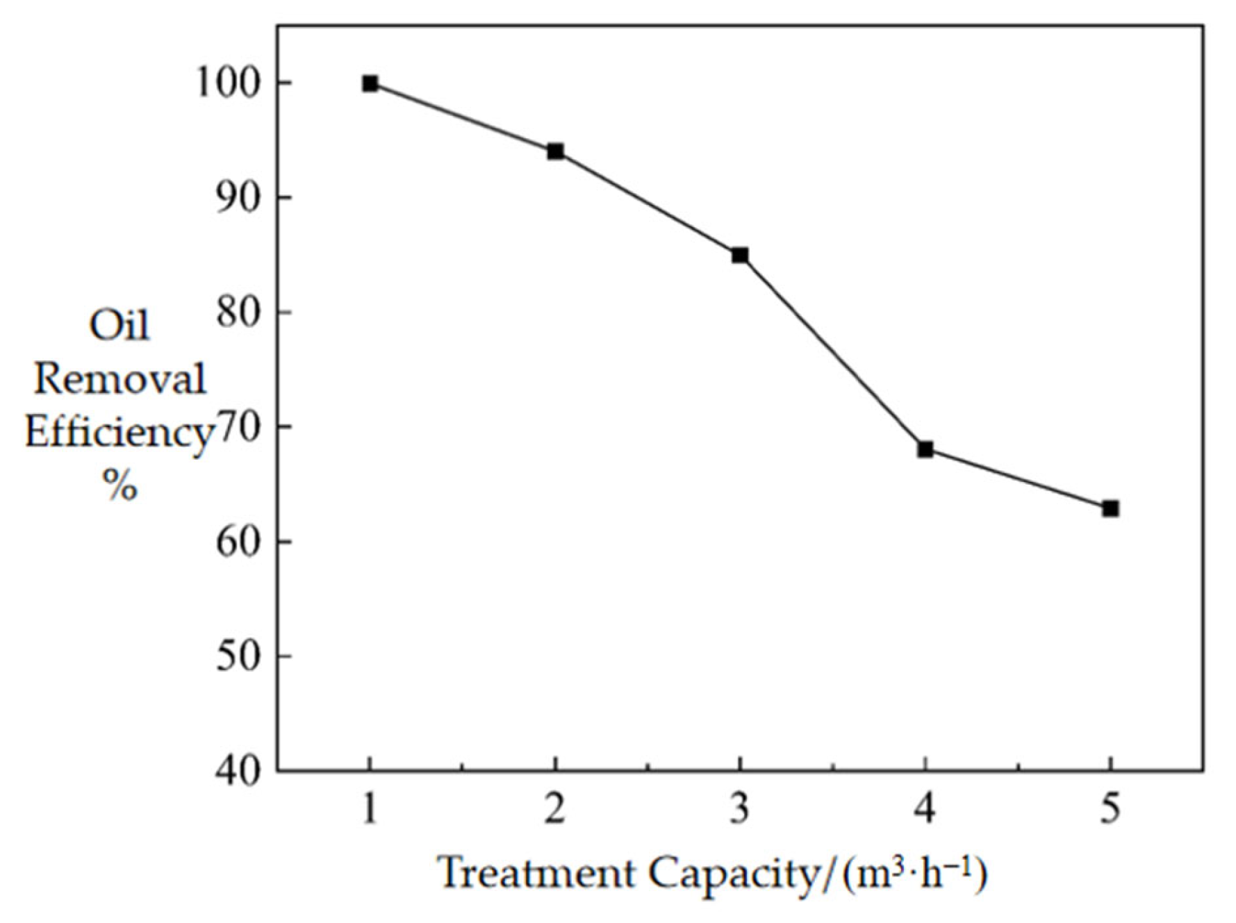 | Treatment Capacity | Oily Wastewater Inlet (kg·s−1) | Oil Collection 1 (kg·s−1) | Oil Collection 2 (kg·s−1) | Treated Water Outlet (kg·s−1) | Oil Removal Efficiency |