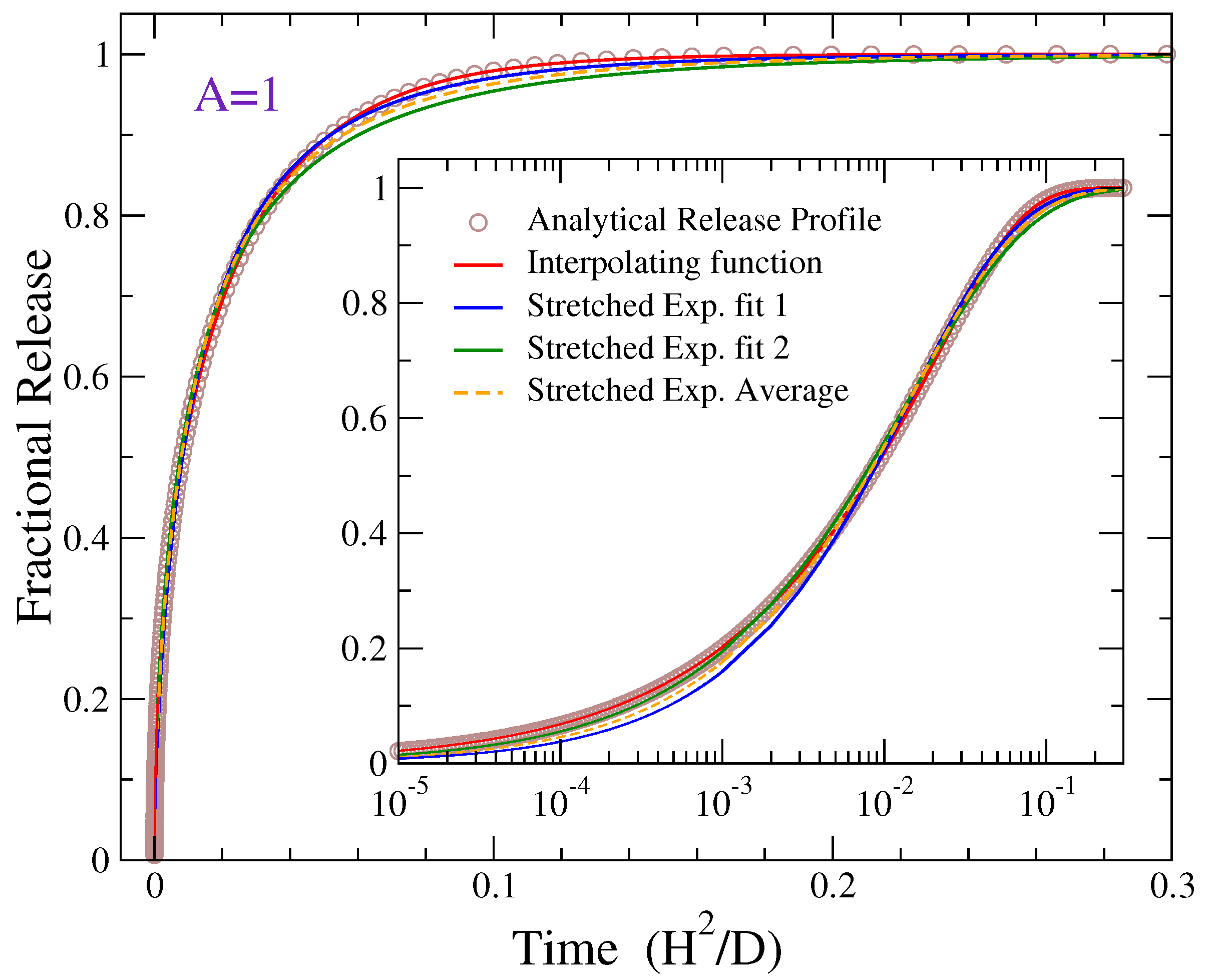 2.2. Dependence of Fractional Release Profiles on the Aspect Ratio