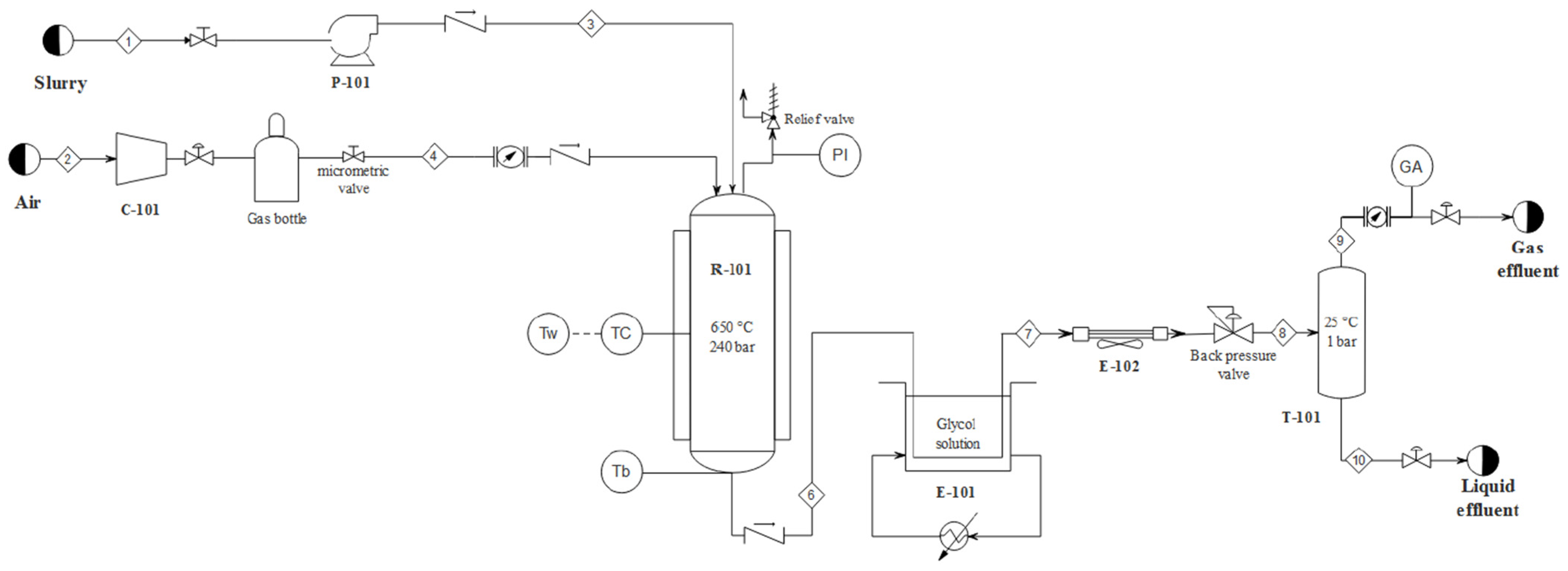 - Cocero, M.J.; Alonso, E.; Sanz, M.T.; Fdz-Polanco, F. Supercritical Water Oxidation Process under Energetically Self-Sufficient Operation. J. Supercrit. Fluids 2002, 24, 37–46. [Google Scholar] [CrossRef]