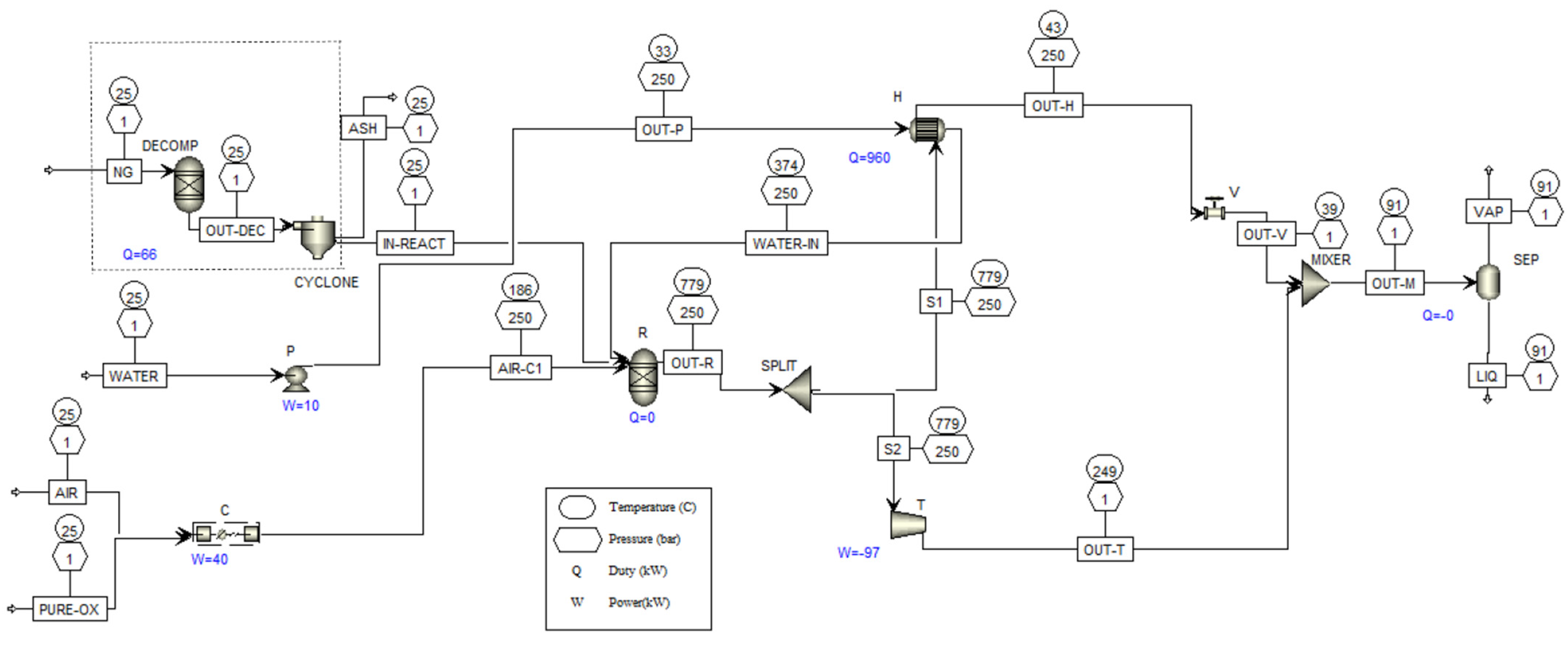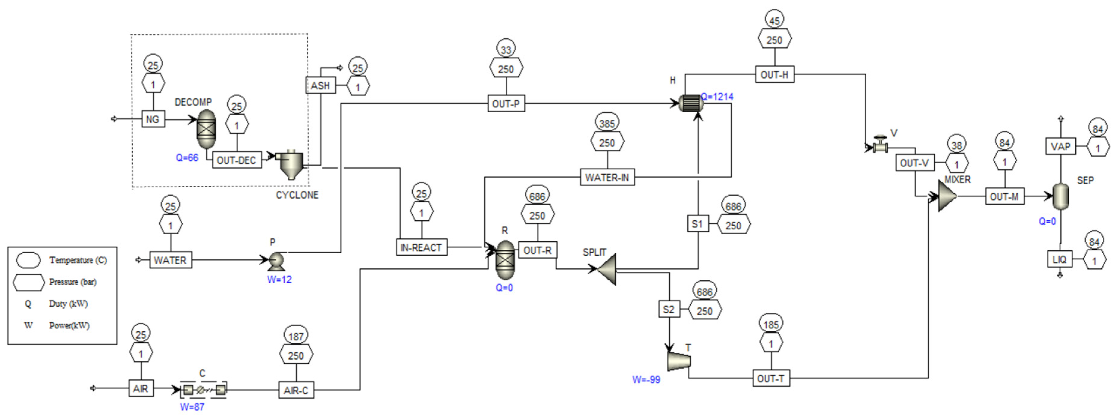 | NG | AIR-C | WATER-IN | OUT-DEC | IN-REACT | OUT-R | S1 | S2 | OUT-M | VAP | LIQ | |