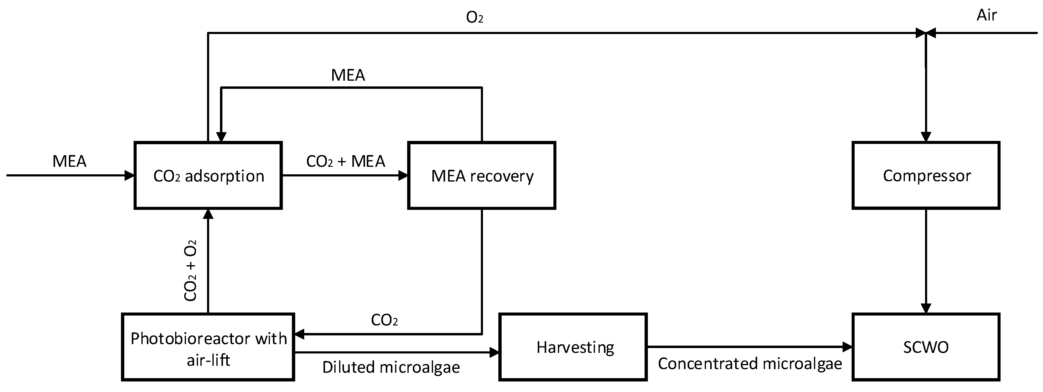 Cosenza A, Lima S, Scargiali F, Grisafi F, Caputo G. Novel Process Configuration of Photobioreactor and Supercritical Water Oxidation for Energy Production from Microalgae. Processes. 2025; 13(12):3860. https://doi.org/10.3390/pr13123860