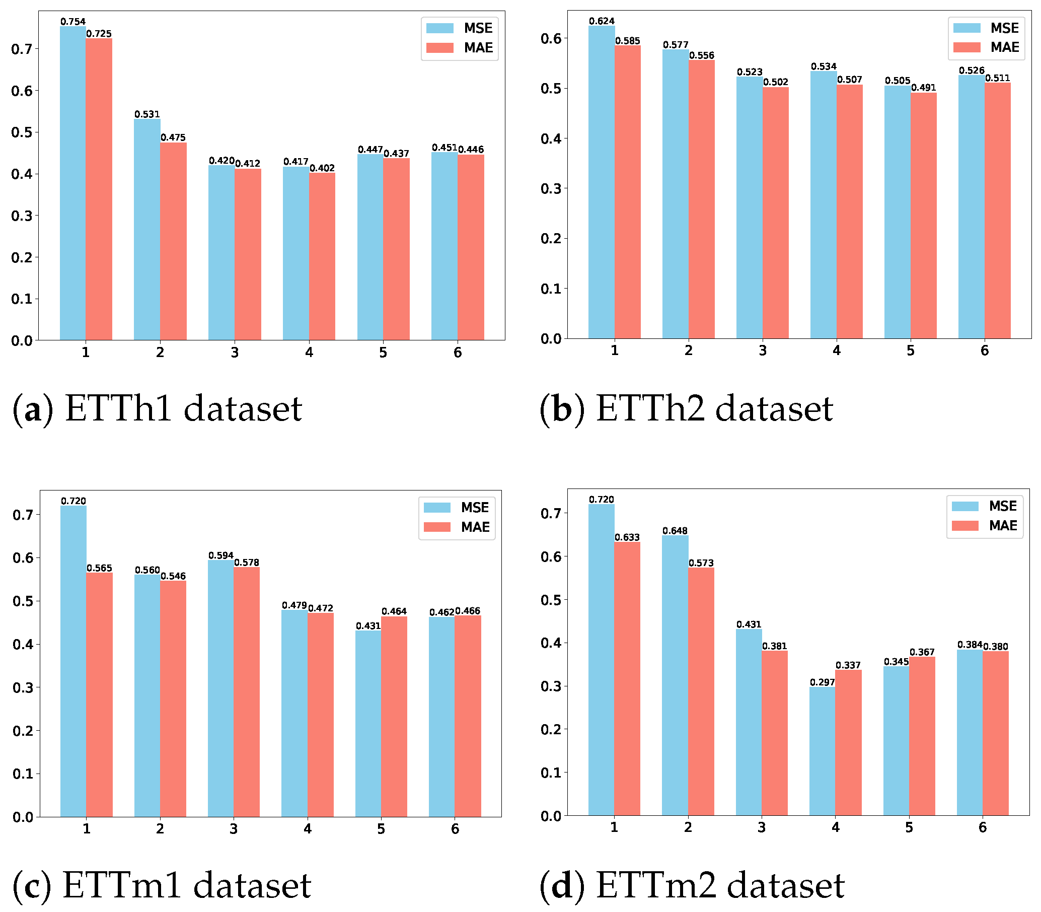- Fan, J.; Zhuang, W.; Xia, M.; Fang, W.; Liu, J. Optimizing attention in a Transformer for multihorizon, multienergy load forecasting in integrated energy systems. IEEE Trans. Ind. Inform. 2024, 20, 10238–10248. [Google Scholar] [CrossRef]
